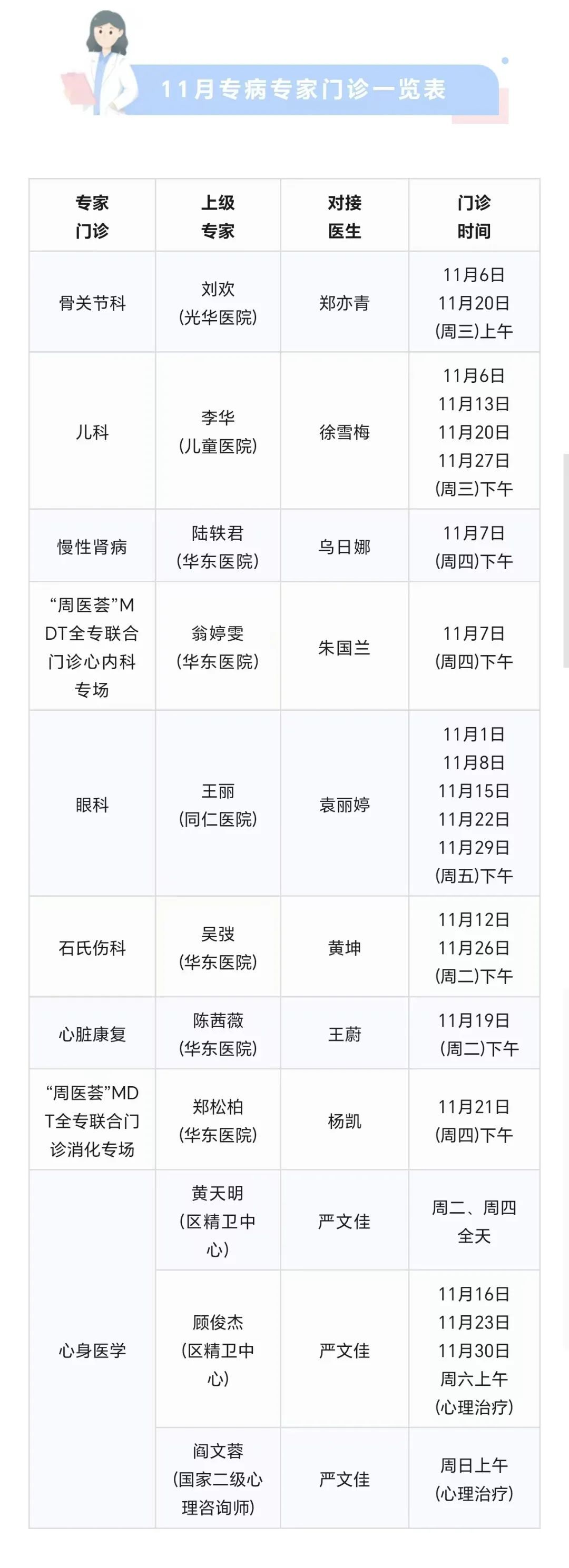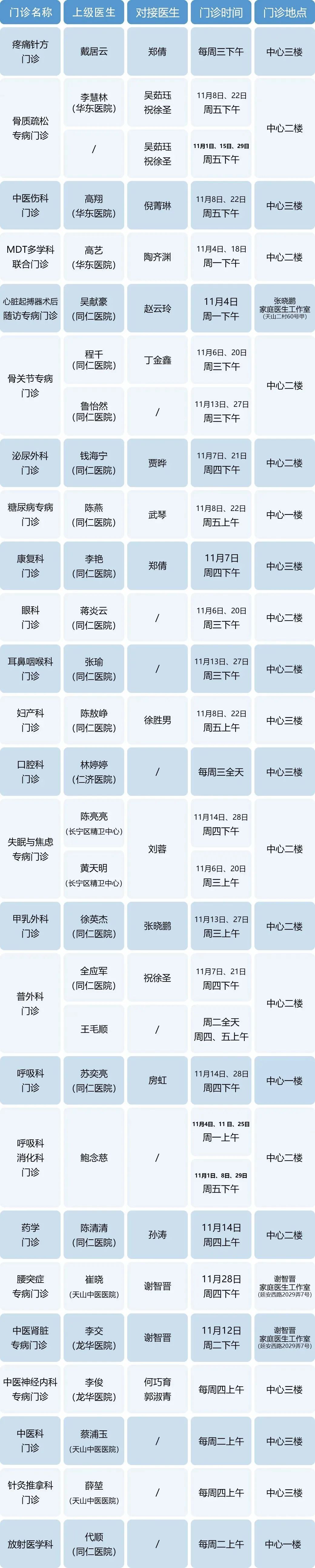 提醒:以上专家门诊可以通过中心对接医生预约,也可以通过家庭医生预约。