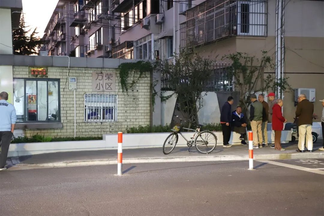 老年人口比例大的居民区里,公共休憩座椅的覆盖面、适老化更为重要。在增设公共座椅的过程中,彭浦镇关注到了在老旧小区,老人们闲时有搬椅子到小区门口“嘎三胡”的习惯,便在万荣小区外增设了围合式座椅和花坛等设施,既满足了老人们交流的需求,又提升了市容环境,目前已经成为了很多老人聊天、晒太阳的好去处。