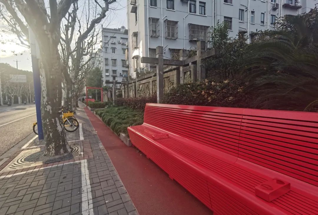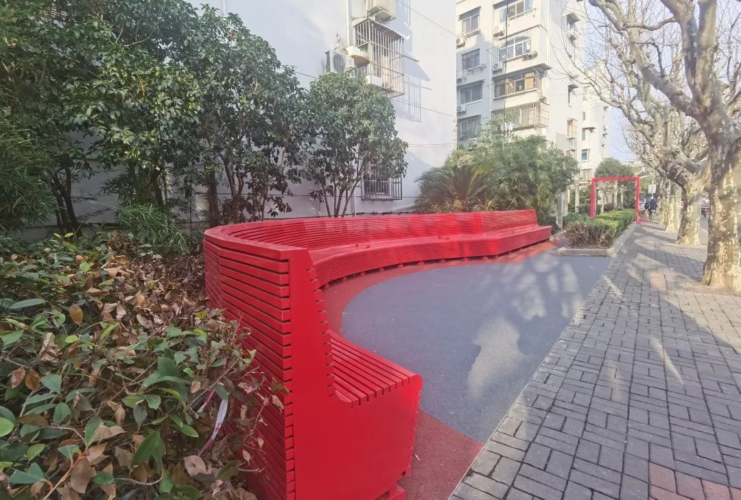 家住广一小区的居民近日发现,自家小区外的绿化休闲带多了不少亮眼的“红飘带”座椅。在居民“休憩座椅数量不够、舒适度欠佳”的呼声下,彭浦镇利用该处绿化带原有条件,因地制宜新建休憩座椅,增加置杯架,为居民提供了舒适的休憩空间,也对街区形象进行了焕新升级。