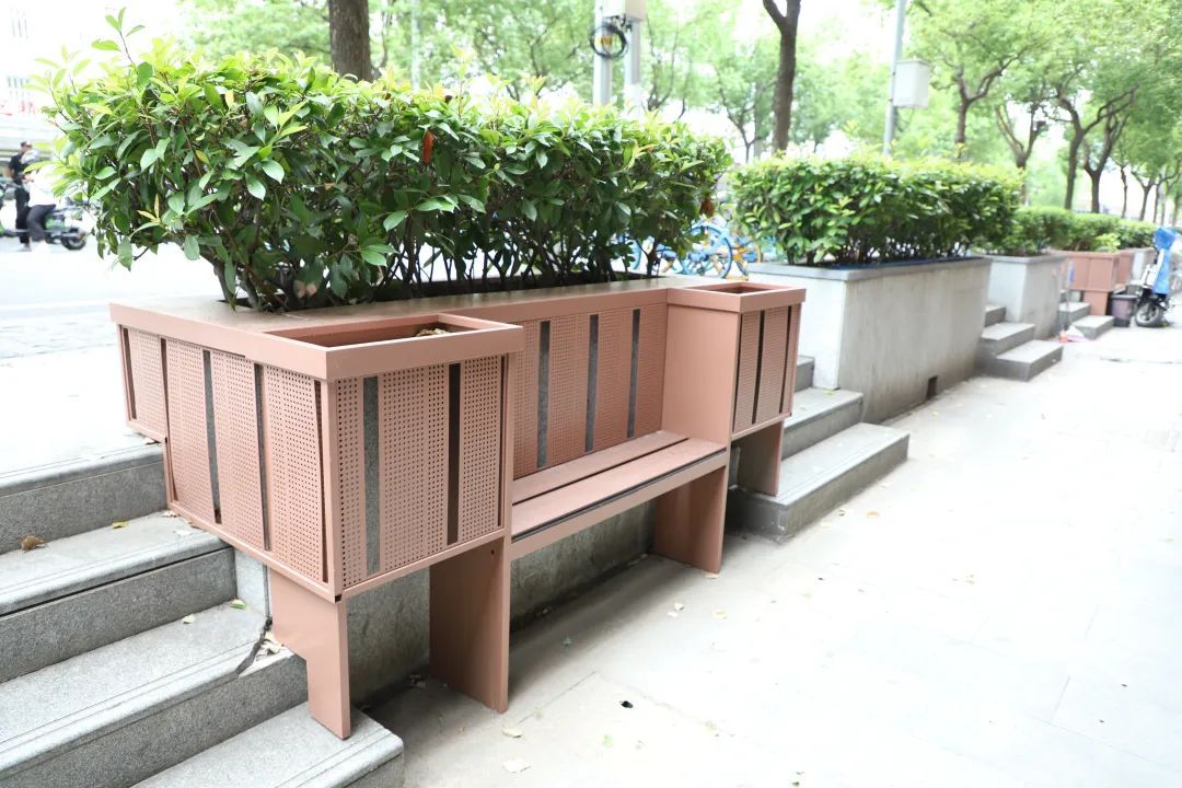 除了设计感,公共座椅最重要的是基本休憩功能。“以前街上没有这个,现在把这些边边角角利用起来也蛮好的。而且不是冷冰冰的石凳子,蛮有心的。”在平遥路上,60多岁的李阿婆说起街面上新增的“花架+座椅”设施赞不绝口。