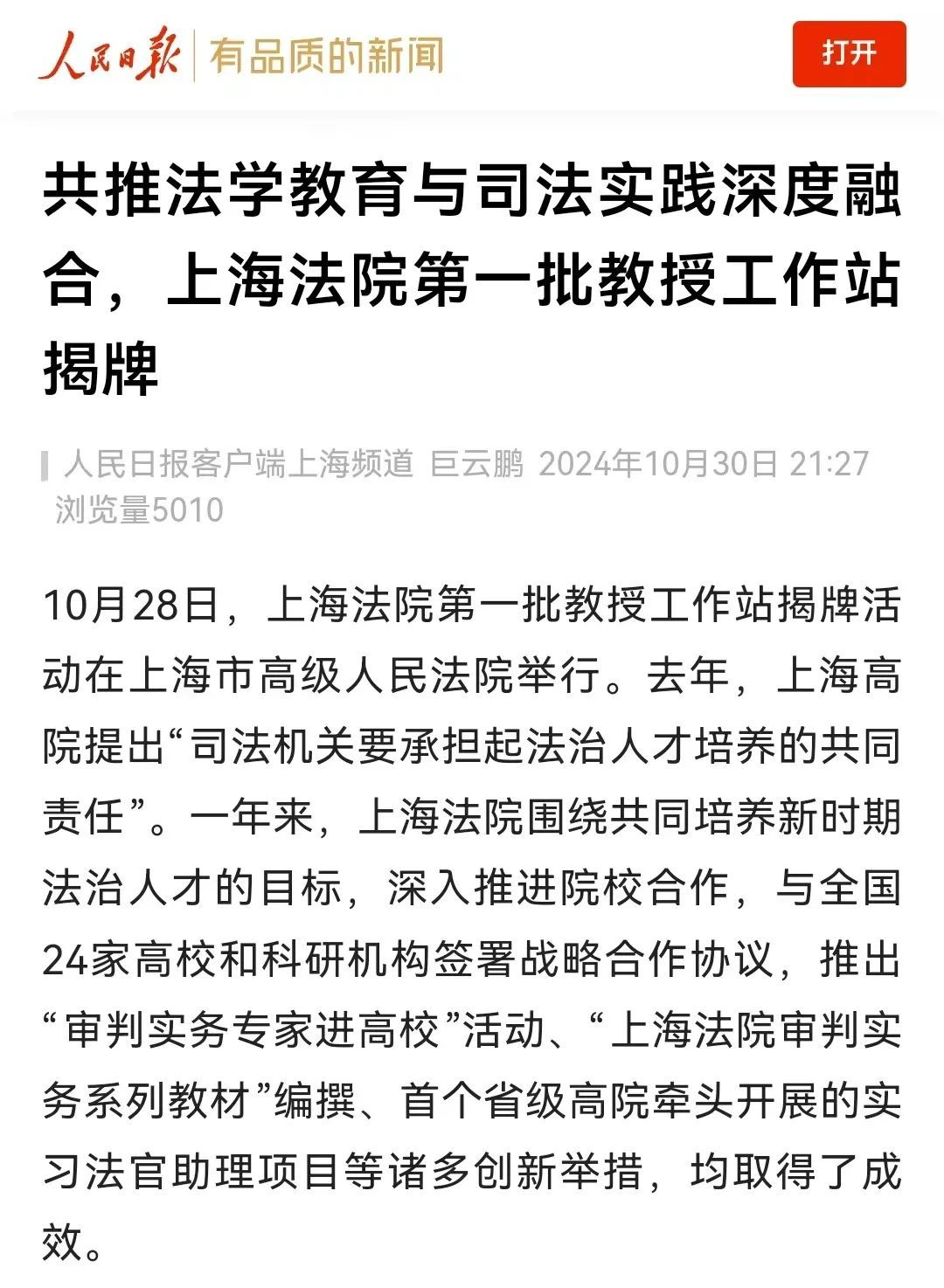 了解更多:《共同推动法学教育与司法实践的深度融合,上海法院第一批教授工作站成立!》