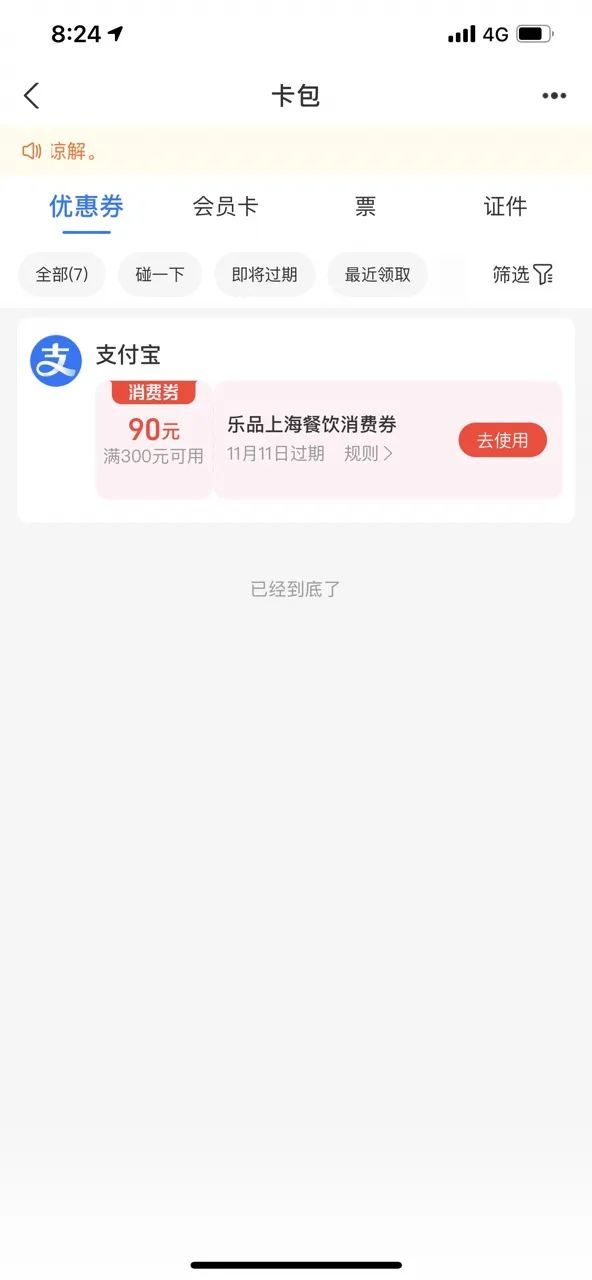 用户可在支付宝首页右上角“卡包—优惠券”查看已领消费券。