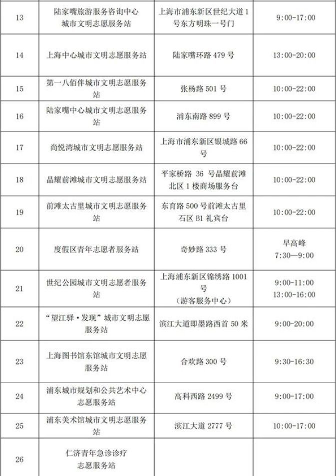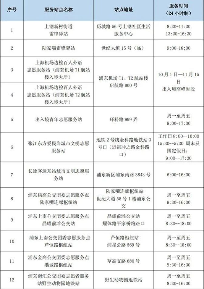 今年进博会期间,浦东新区开展城市文明志愿服务专项行动。在全区交通枢纽、重要商圈、公园景区、窗口单位等地,设置了浦东机场边检、上海图书馆东馆、世纪公园、上海中心等29个城市文明志愿服务站点,志愿者将以饱满的精神状态、热情周到的服务,为来往的展商和市民提供包含信息咨询、宣传进博、便民利民的服务。