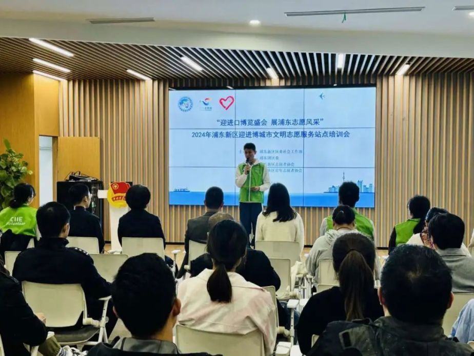 11月1日上午,由浦东新区区委社会工作部、浦东团区委共同主办的“迎进口博览盛会,展浦东志愿风采”2024年浦东新区迎进博城市文明志愿服务站点培训会在浦东社创坊拉开帷幕,来自29个城市文明志愿服务站的志愿者代表参加培训会。