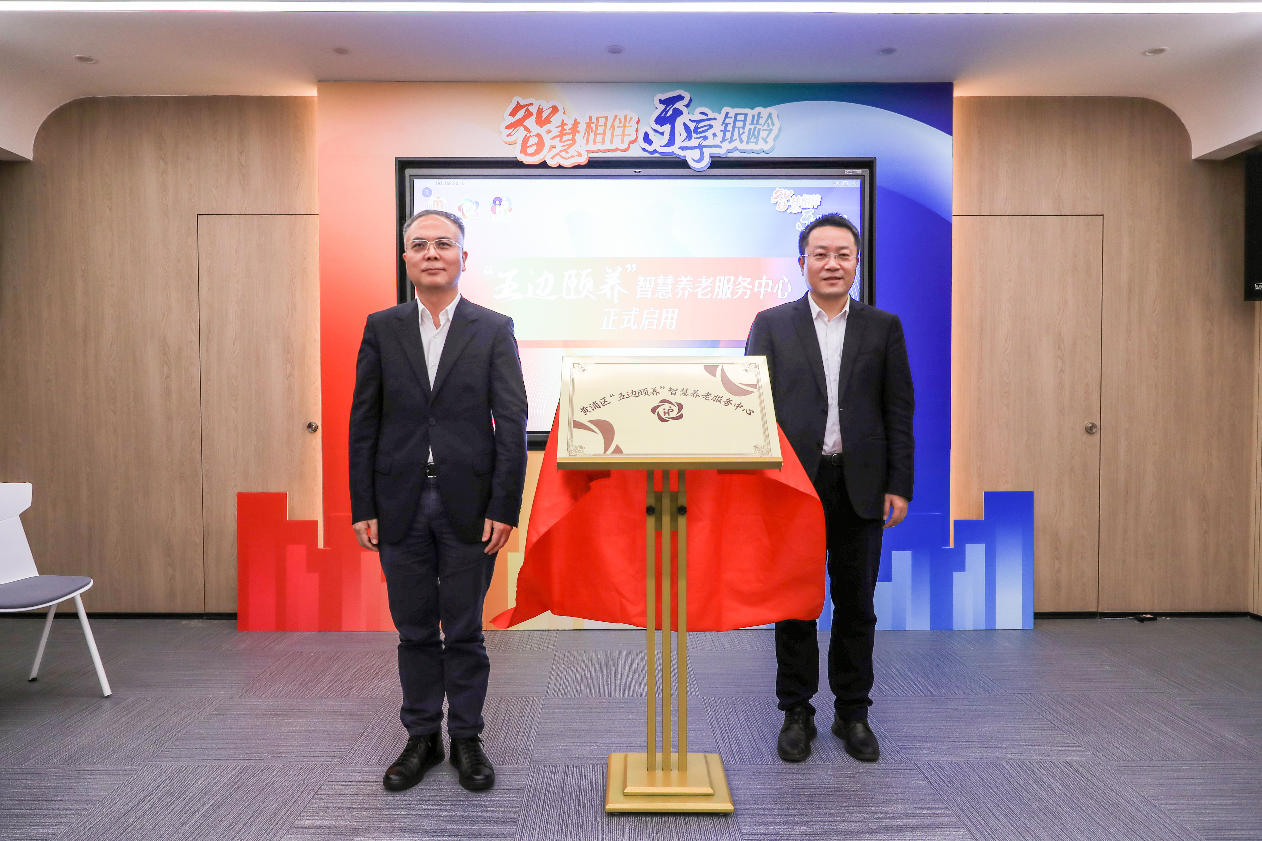 沈山州和沈敏共同为黄浦区“五边颐养”智慧养老服务中心启用揭幕。