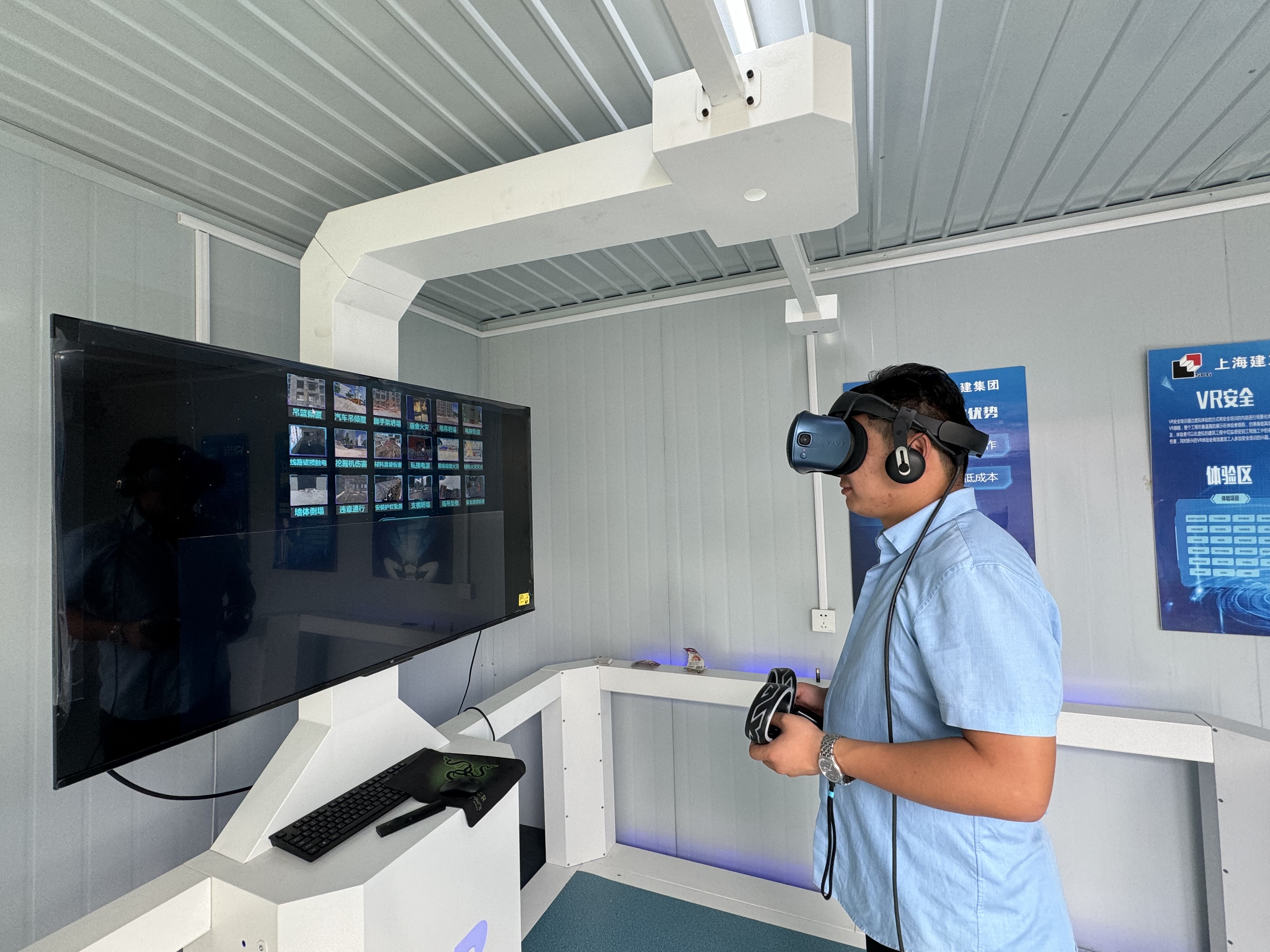 值得关注的是,在施工现场还设有VR安全体验区,通过虚拟技术模拟施工中可能发生的事故,进一步强化施工人员的安全意识并提升相关预防和处理能力。