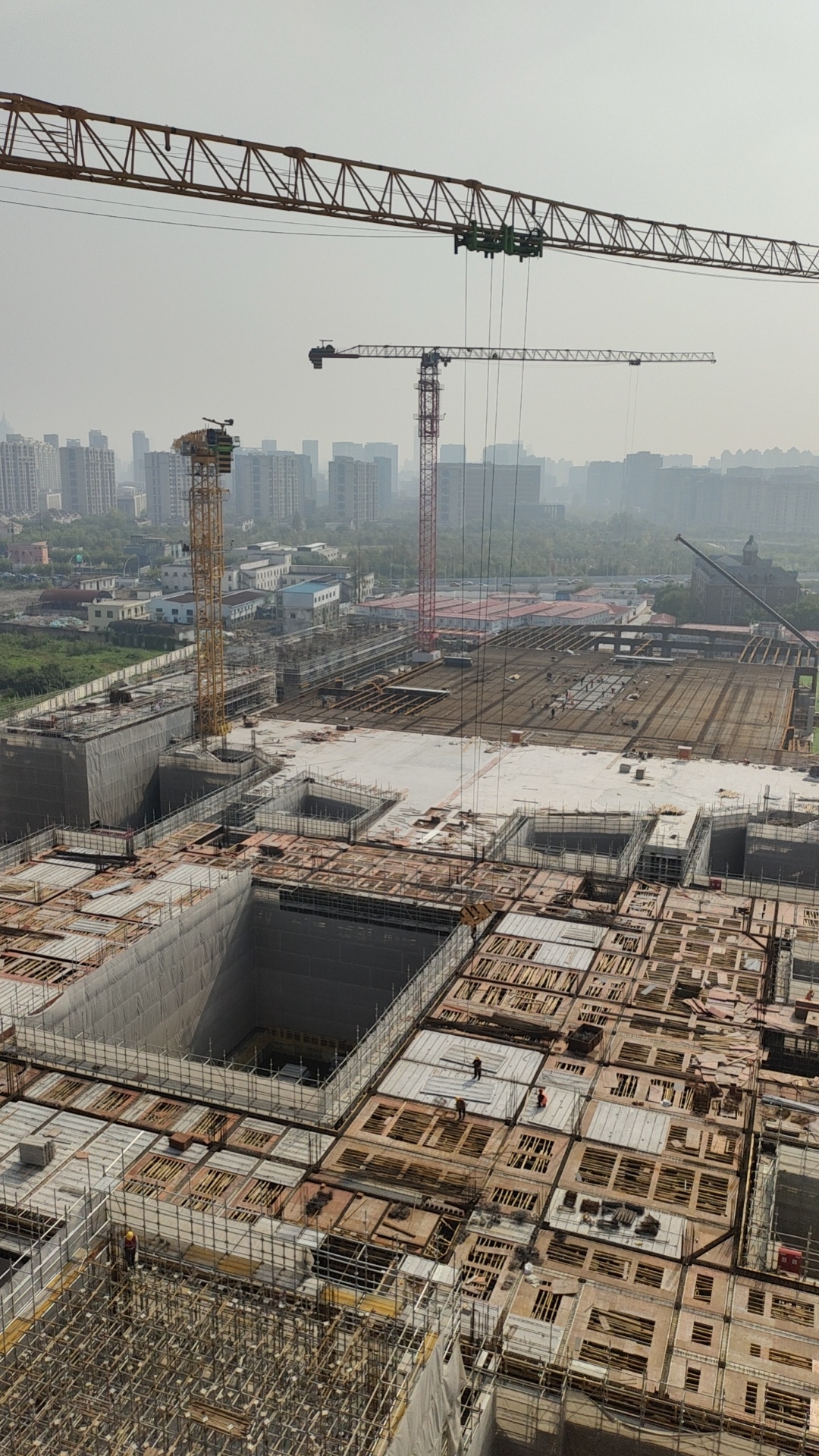 走入施工现场,记者看到,高耸的塔吊巍峨矗立,它们巨大的机械臂在空中灵活转动,精准地吊装着一块块建筑材料;施工区域被清晰地划分为多个功能区,从材料堆放区到加工区,再到实际施工区,每一处都标识明确,物资摆放整齐有序,确保了工作流程的顺畅进行,伴随着机器的运作声和偶尔传来的指挥口令,现场一派热火朝天的施工氛围……