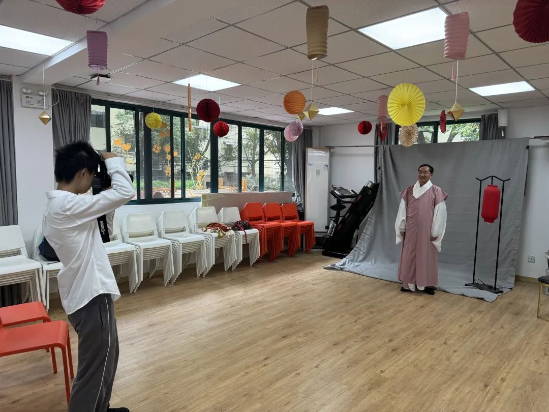 老人们笑得合不拢嘴,纷纷夸赞孩子们:“拍得真好呀!”孩子们也乐此不疲,为老人们捕捉幸福的瞬间。为了增添更多的乐趣和纪念意义,孩子们还精心准备了鲜花和古装,为老人们变换着不同的风格进行拍摄。当爷爷们第一次穿上古装时,他们惊讶又欣喜地说:“呀!这是我呀?”仿佛穿越时空,体验了一把古代文人雅士的风采。
