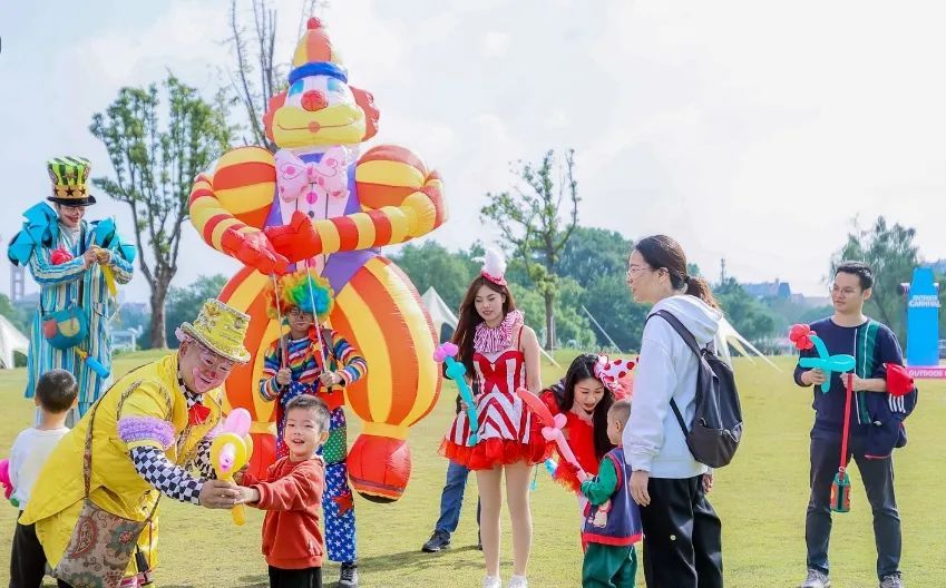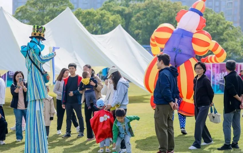 下午3点,走进新江湾城文化体育公园文化片区的草坪广场,精美的户外电影海报展正在展出。与此同时,在民谣乐队欢乐的演奏声中,家长和孩子们围绕着高跷小丑乐开了怀。