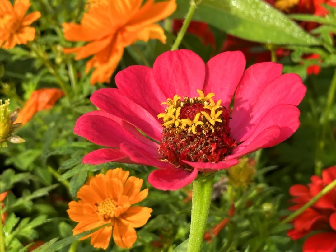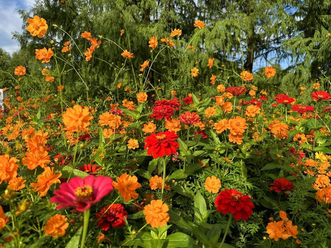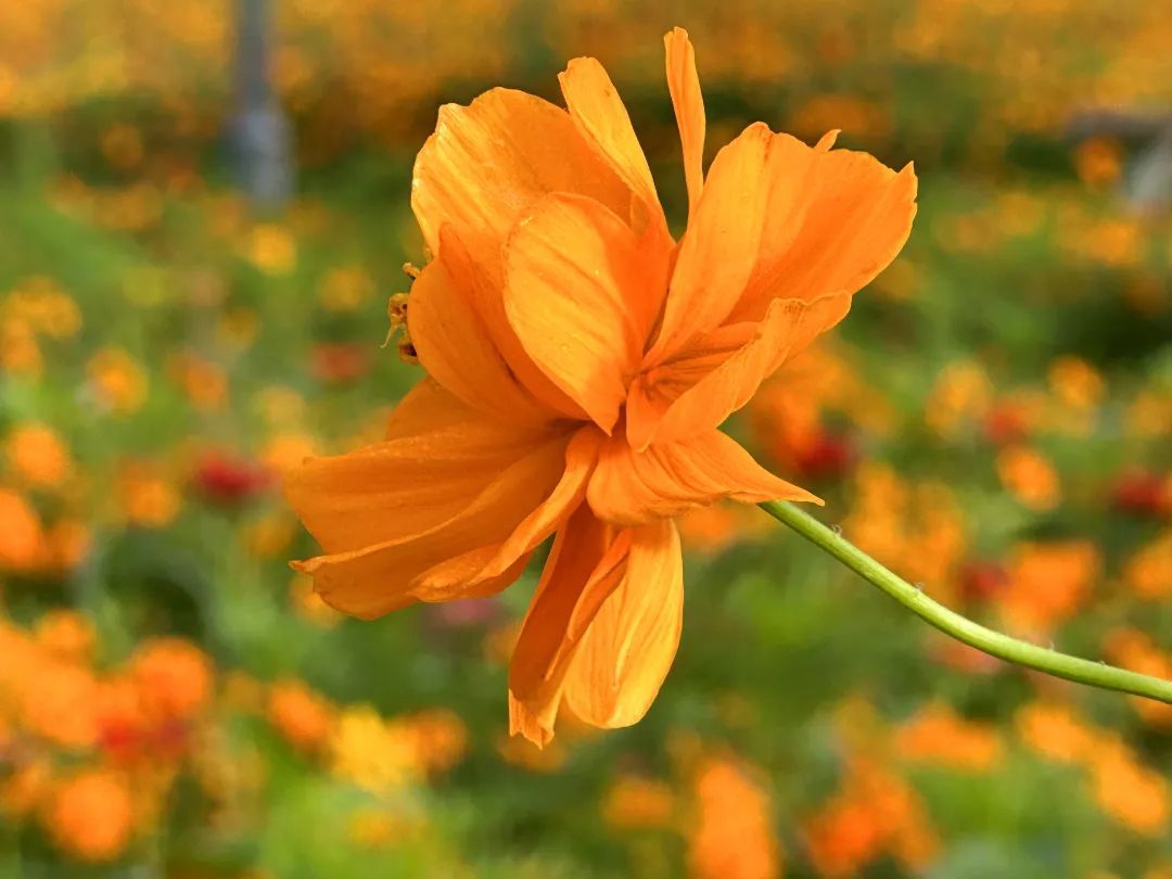 闵行文化公园有个景点叫百花园,不同季节有不同的花卉绽放,春有喜林草、夏有向日葵等。而秋季则有大片的百日草(百日菊)和秋英(硫华菊、波斯菊)迎风绽放。这三种菊类花卉,相互交织,相互浸染,在秋风的微微吹拂下,构成绚丽的“菊海”浪花。这些天,闵行文化公园的百日草和秋英正是盛花期,因此,我连续几天来到此地,赏花撷英,沉醉在花丛中,迷恋在彩浪中。 百花园的位置是在公园的东南,儿童乐园的北面,是一块很大的草花种植地,面积有6000多平方米。东面高耸着新颖电信塔,西面流淌着古村清河水。在这一高一低,一天一地景象的映衬下,烂漫的百日菊、硫华菊和矮波斯菊显得更加娇丽和妩媚。 虽然这三种花都带“菊”字,且也属菊科类植物,却与我们通常所见的菊花还是有很多不同。鉴于本地居民中也有称其为菊花的,故本人耳闻目染,也称其菊花可好。 走在纵横交错的花间小径,映入眼帘的菊花五彩斑斓、繁花似锦。 百日草,以其挺拔的身姿,花朵状如彩蝶,花瓣紧密相拥。每一朵都像是一颗璀璨的小太阳,散发着无尽的活力。 红的似火,热烈奔放,燃烧着生命的激情。 粉的如霞,丝丝甜美,传递着温暖的气息。 黄的像金,璀璨夺目,闪耀着丰收的喜悦。 而与百日草交织在一起的秋英,纤细的茎秆在微风中轻轻摇曳,像是在为这盛大的花的舞会奏响激情的旋律。 身姿轻盈,仪态万千。如翩翩起舞的仙子,漾着一脉婀娜而玲珑的姿态。 粉若桃李,娇羞欲滴。如少女脸上的红晕,透着一股纯真而迷人的韵味。 白如霜雪,纯净素雅。似冬日初降的瑞雪,沁着一种圣洁而空灵的美感。 紫似烟霞,神秘高贵。似深藏云雾的仙阁,溢着一种迷幻而深邃的魅力。 我穿行在百花园的小径上,或抚叶睹翠,或托瓣闻香;或俯首取景,或下蹲仰视。 不远处,有三二女子,在花的海洋中如轻盈的蝴蝶。身着色彩斑斓的裙装,与五彩的花朵相互映衬,更显明媚动人。 她们在拍摄,留下青春花样的美丽。 她们在嬉戏,发出朗朗宜人的笑声。 几个年轻的小伙儿也被这壮观的花海吸引而来。他们迈着大步,兴奋之情溢于言表,嘴里不停地呼喊着:“哇,真好看啊。” 时而在花径间穿梭,去发现娇艳欲滴的花姿。 时而在花海里驻足,在吮吸清香四溢的花香。 在靠近外环线的路上,正在快走的几位大妈大叔也停下了脚步。大妈们除了摆pose拍照,还念叨着:“这花可好看,快发微信给老姐妹们看看。”大叔们一边观赏,一边还在高谈阔论。眼睛却死死地盯住满目菊花。有一人说:“好家伙,这些菊花今年开得特别好。” 秋天百花园的菊花,不仅是色彩与生命的狂欢,更是喜悦与兴奋的喷涌。每一个来到这里的人都如同置身于童话的世界,畅游在这如梦似幻的花海,流连忘返于这份壮观,尽情领略着这份华美。 当然,如果你听了下面的故事,那种秋菊的美一定会更加迷人。很久很久以前,有个村姑叫小美,她最爱村外一种不知名的小花。大旱来袭,花海枯萎。小美心急如焚,祈求上苍行善。神仙告诉小美,在遥远神秘山中有能让万物复苏的神泉。小美梦醒后毅然踏上征程,披荆斩棘,含辛茹苦,终于找到神泉。回家路上,因劳累和困苦让她的身体越发虚弱,终于在到家之前倒下,神泉洒落土地。神奇的是,此地长出大片绚烂花儿,足足开了一百天。村民们为纪念小美这份勇敢和善良,便将花命名为百日草。 昔日小村庄,传说代代相传;如今百花园,繁花相伴更艳。