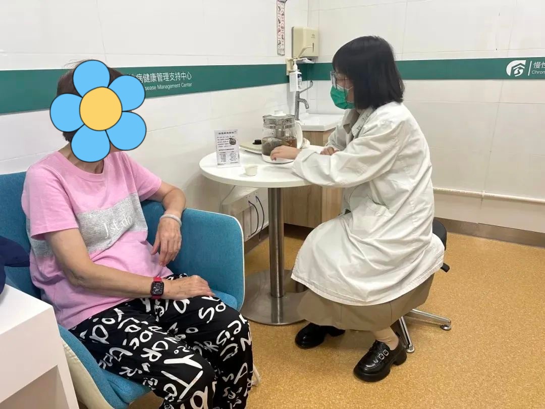 王阿姨是该中心健康评估门诊接待的第一人,家庭医生郁医生根据她近一年的就诊情况和身体状况,为其制定了详细的健康评估和干预方案。家庭医生助手根据她的血脂情况,为其提供了祛湿降脂茶饮。