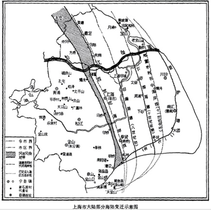 上海市大陆部分海陆变迁示意图,原载《考古》1973年第1期