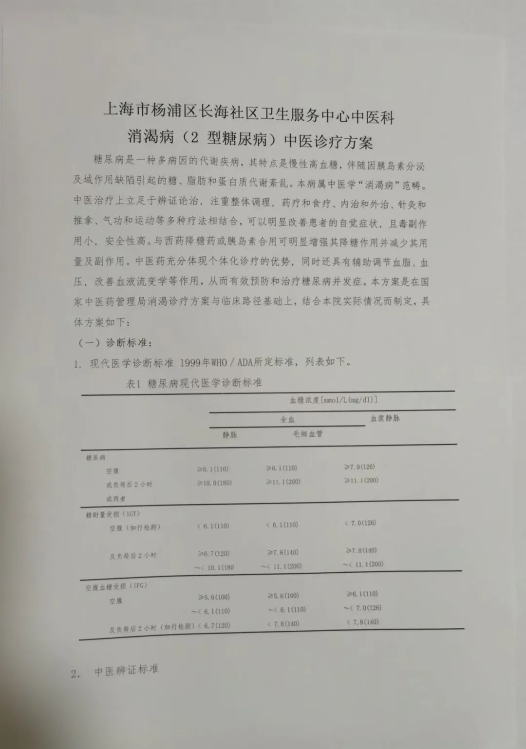 ——长海社区卫生服务中心消渴病(糖尿病)专病门诊