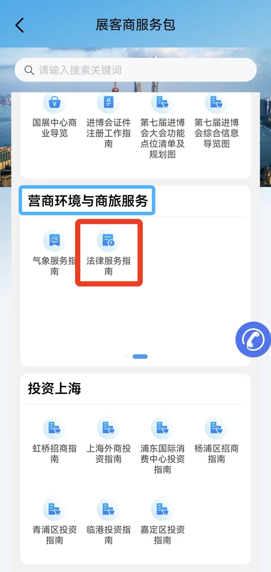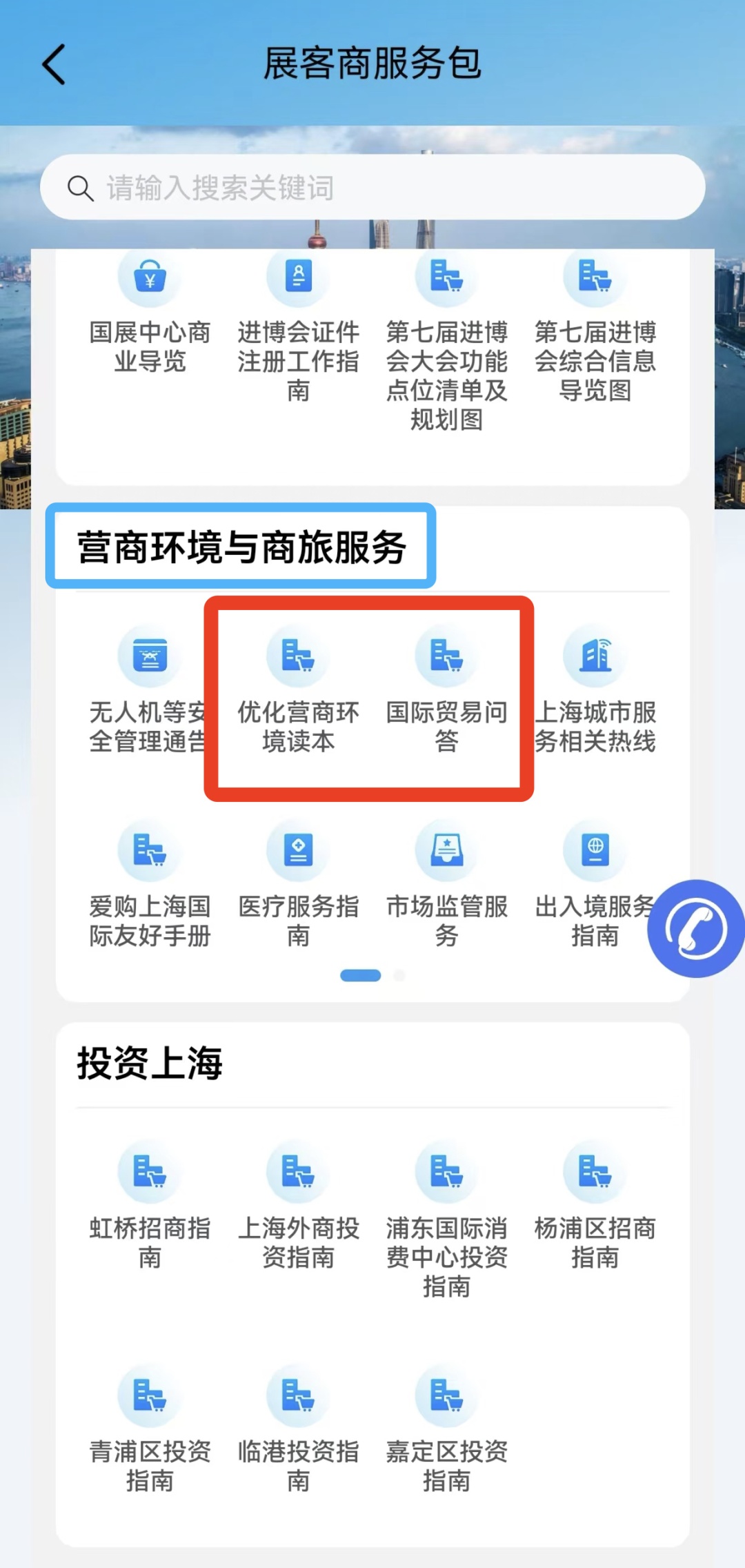 在"营商环境与商旅服务"专区