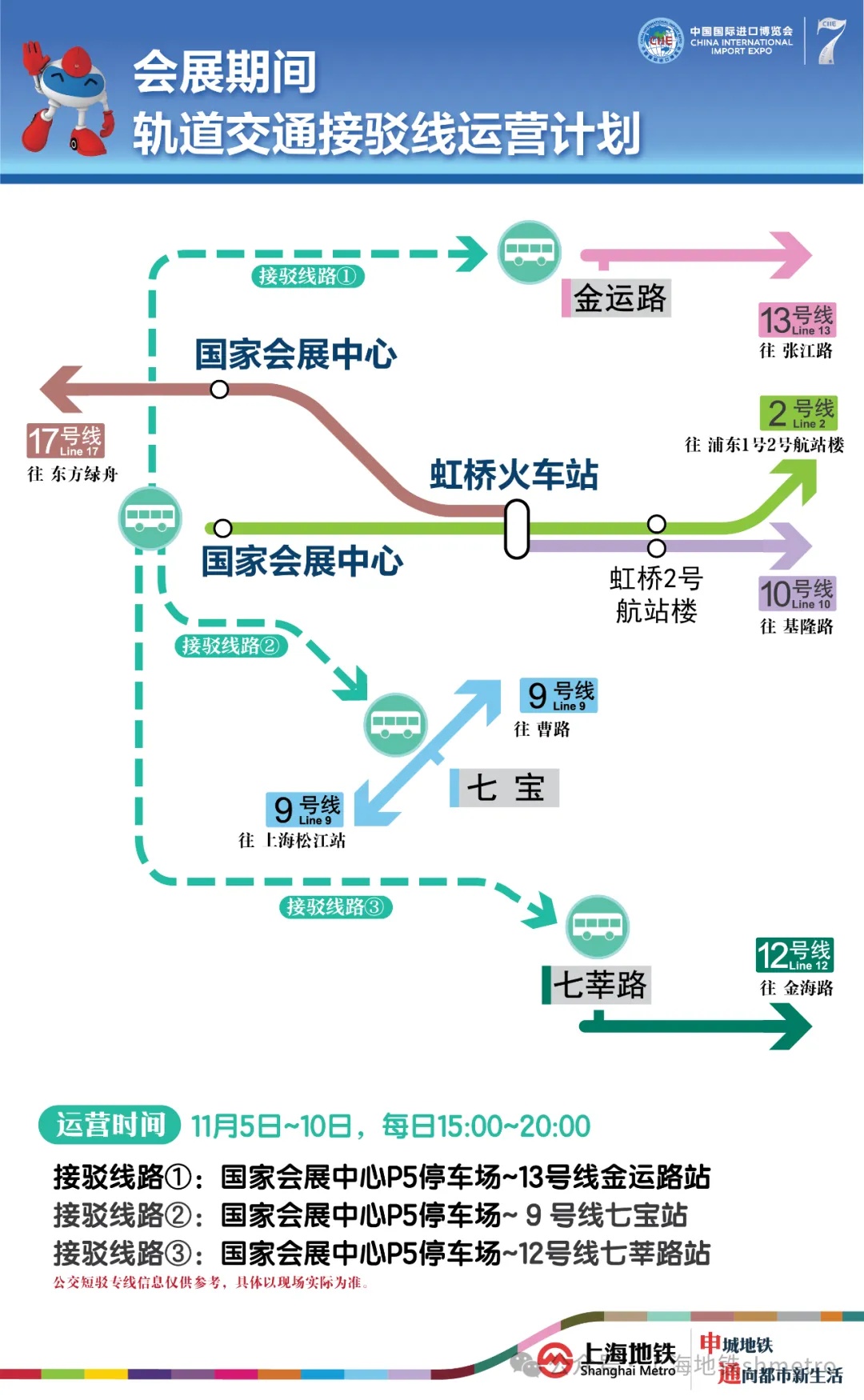 进口博览会期间,相关单位将专设3条轨道交通接驳线: