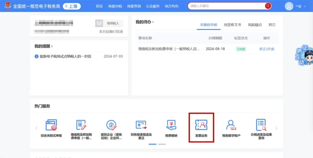 登录新电子税局,在首页点击【发票业务】;