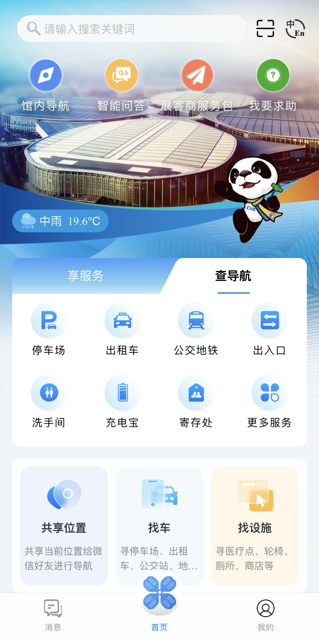 (5)查找展商、设施、商户:您也可以通过首页中间的查导航栏目,根据您的需求查找展商、设施、商户等,并点击具体的应用服务使用导航功能。