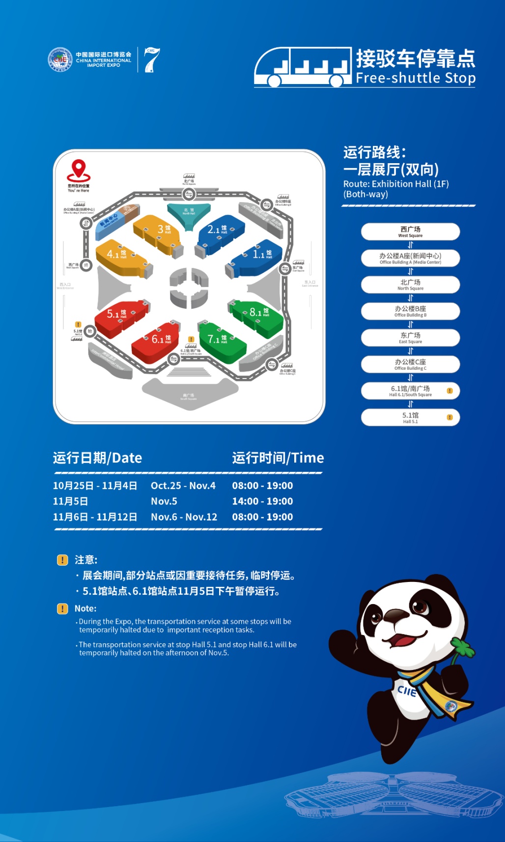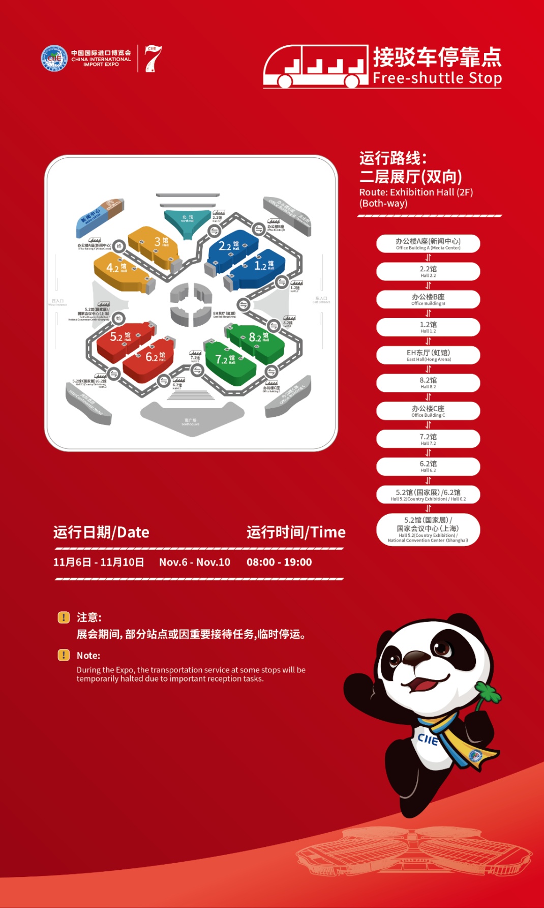 进博会期间,增加了多条公交、轨道交通接驳线路,部分线路凭第七届进博会有效证件还可免费乘车:
