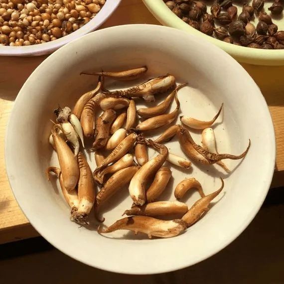 当然,种球要是买的较晚,或放的时间太长了,就自己会发芽。这种情况很好解决,只要将芽点最顶端部分露出土面,其他部位深埋即可;种植过程中芽点断了也没有关系,可以再长出来。