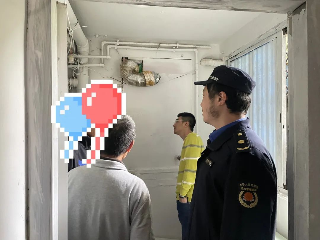听到居民诉求后,执法队员第一时间与居委干部、物业工作人员至中华新路某弄某号进行检查,并确认了该居民反映的情况属实。
