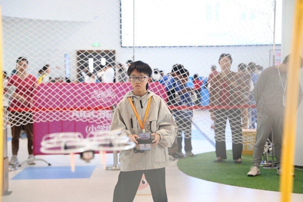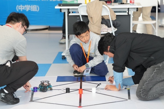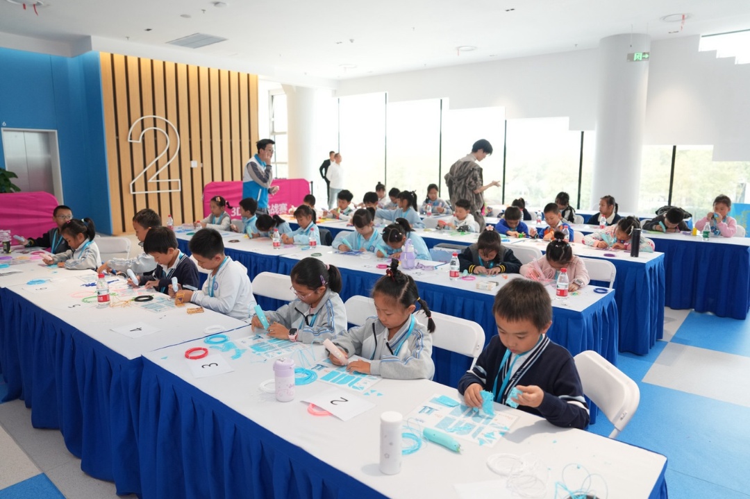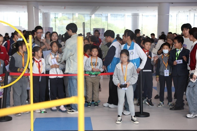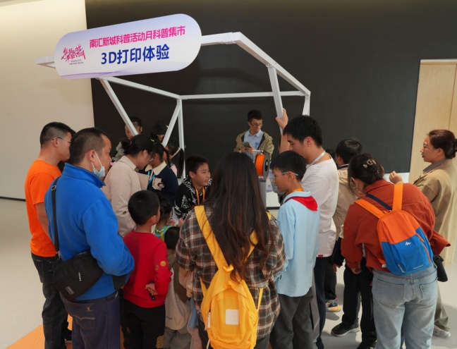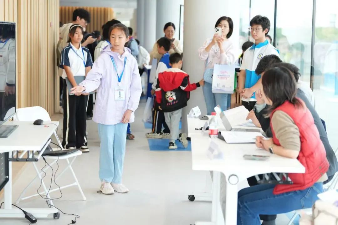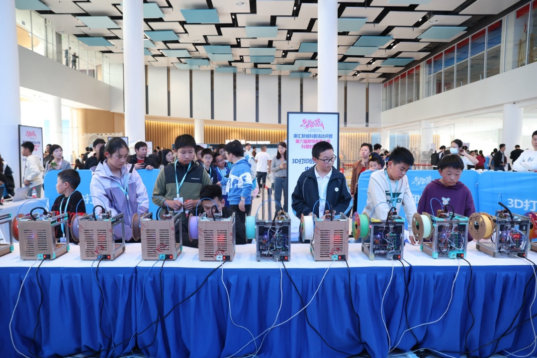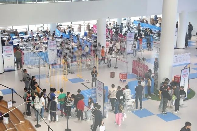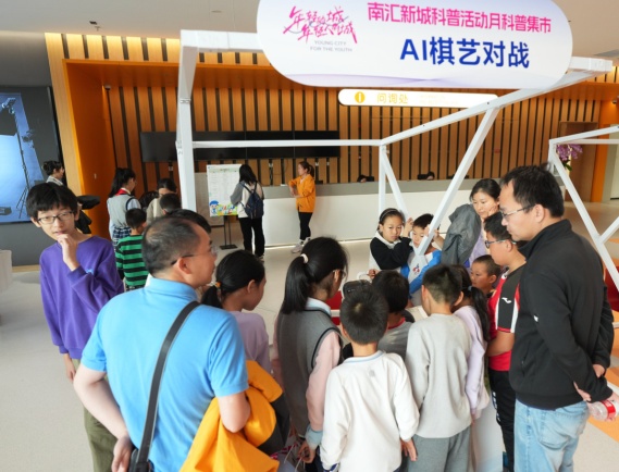 在比赛现场等候区,南汇新城科普活动月科普集市同期开展,现场有AIGC体验、AI棋艺对战,VR、无人机、编程小车以及3D打印等互动体验,同时上海天文馆也为现场带了精神的科学表演秀《凝好》。