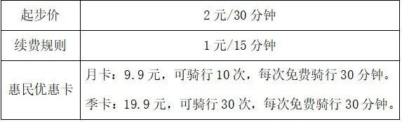 共享自行车收费标准: