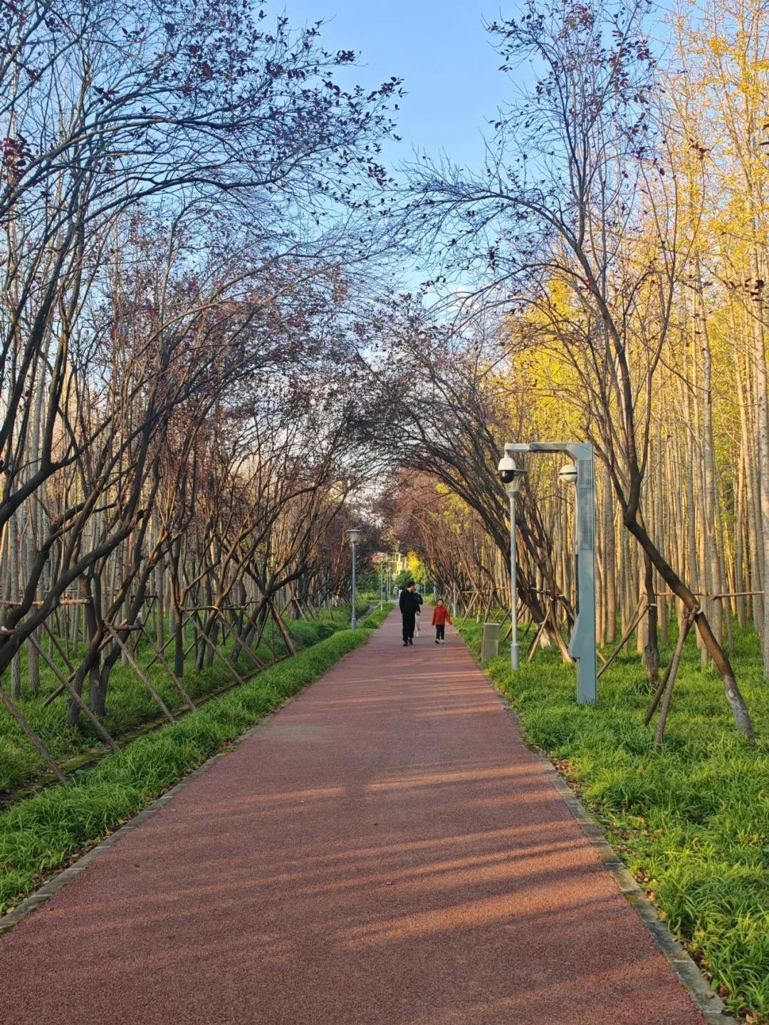 作为市中心的“绿野仙踪”,长宁外环生态绿道一直以来都备受市民和游客的喜爱。在金秋时节, 当你骑着共享自行车,穿梭在绿道上时,一定会被眼前的美景深深吸引:阳光透过树叶洒下斑驳的光影,银杏叶铺出一条“金色地毯”,乌桕树装扮出一条“彩虹路”……骑累了还能在绿道里看看飞过的“大飞机”,在四座颜值极高的驿站里休息,或静静地坐在光影里,感受秋日绚烂的美好时光……