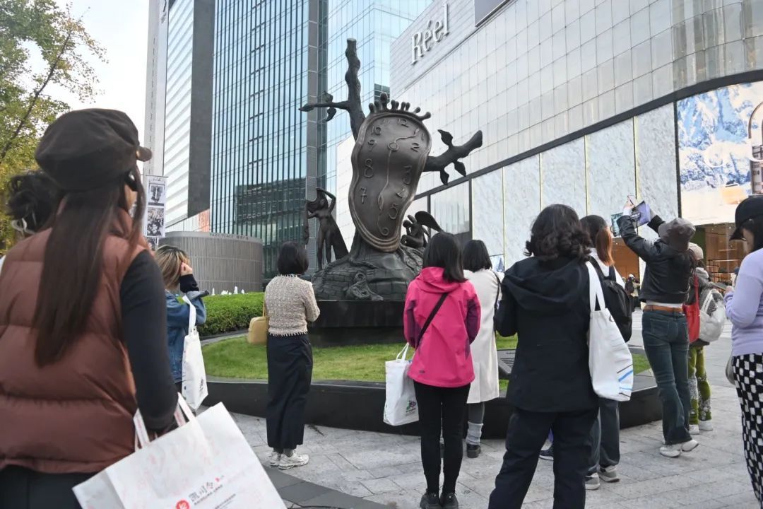 漫步南京西路, 你能找到多少件 雕塑装置? 静安区在市民的公共文化建设上起步非常早,南京西路上海展览中心友谊会堂前,法裔美籍雕塑家阿曼的作品《飞跃的马》,就是千禧年以后第一批上海的城市雕塑。今年的静安国际雕塑展,又以南京西路为一条延伸线,将前沿艺术装置“植入”公共空间。 City Walk的路线经过同福花园和兴业太古汇,大家欣赏了两件本届雕塑展延伸点位作品《梓树》《蛇的尾巴和身体》; 随后,队伍一路向西,在上海展览中心友谊会堂前,为雕塑《飞跃的马》驻足; 最后,大家来到芮欧百货,以伫立在越洋广场上的世界大师达利的作品《时间的贵族气息》为终点,为这场城市漫游画上了句号。 漫游的过程也伴随着导览人对城市生活历史的讲解。 “我们对南京西路的记忆可能是向阳儿童商店门口的儿童乐园,童年里凯司令那块很甜的栗子蛋糕,三代人一起在梅龙镇酒家吃的年夜饭;也可能是懵懂少年时期去南京美发公司做个很‘噱头’的造型,再买身时髦的时装,再相伴看场电影;还有可能是成年后上班通勤购物娱乐……这条路上有很多商业体,也和许多上海人的个体成长息息相关。” 导览人Gin告诉记者。 翻看近150年的历史,南京西路在经济发展的顺流中勇创个体商业与生活风潮,铺展开摩登生活的丰富多样性。 20世纪初,人口和机遇的涌入“点燃”了南京西路,第一家中国人开的西点店(凯司令)、中国第一家时装商店落户在此,文化与商业融合的苗头显现,多元文化、丰富业态、潮流时尚开始起步,朝着繁华商街急剧演变。中外商人在道路两旁开设了大量娱乐场所。近代实业家张叔和开发的“张氏味莼园”(今张园)对外开放,配置魔术表演和游乐宫,“游人如织,一时甚至堵塞道路”。 如今行走在这条路上,伴随着导览人娓娓道来的讲述,市民们仿若漫游于交错相通的不同时代之间。川流不息的车流与人潮、忽明忽暗的霓虹灯与路灯、衣香鬓影的时髦女郎逐一闪现于眼前……如同音乐中的复调,过去、现在与未来在漫游中交织。 “作为一个在静安南西住了很久、对雕塑公园有特殊情感的市民,今天的City Walk依旧可以为早就熟悉的地方注入很多新的东西。大都市,有温度,有鲜度,很期待下次再参与雕塑展的活动。” 参与市民徐女士告诉记者。