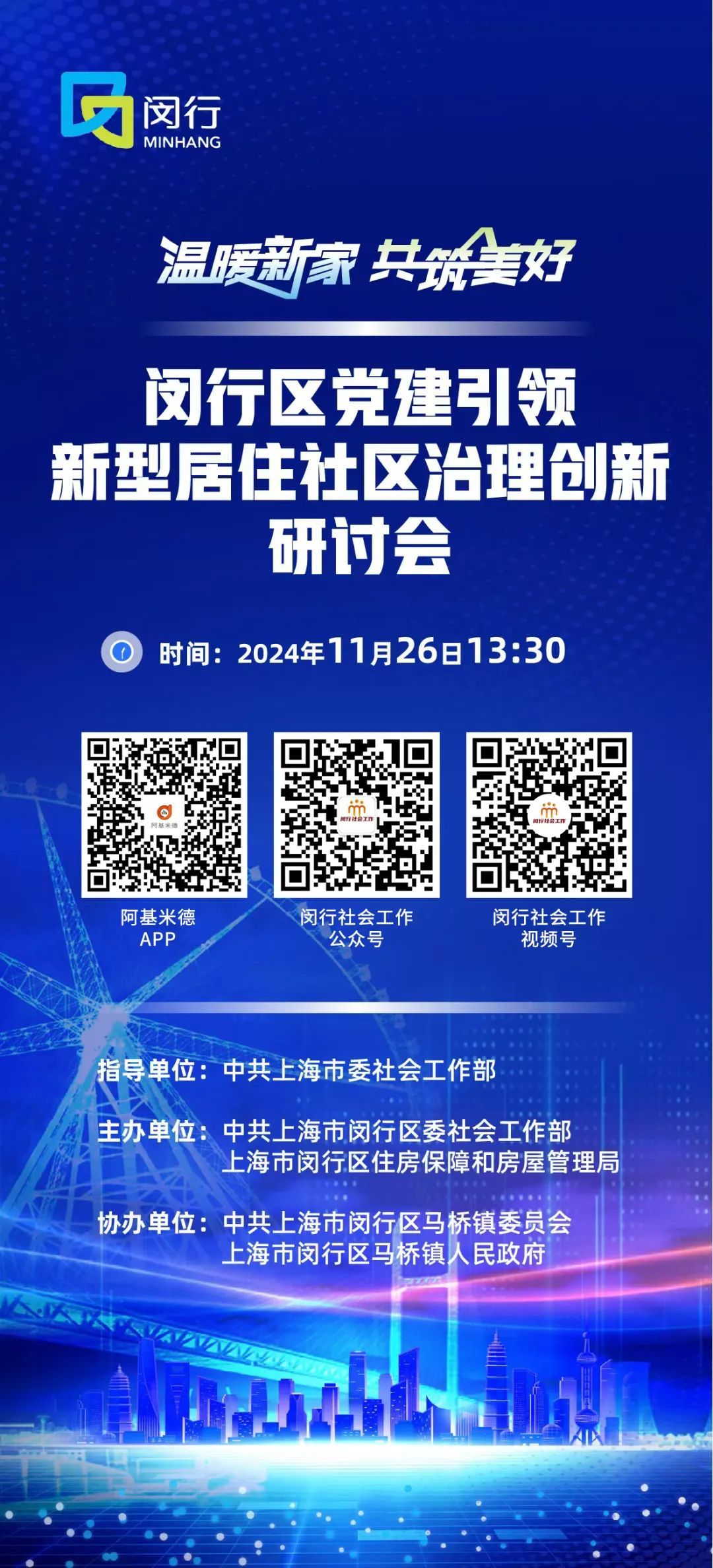 11月26日13:30,闵行区党建引领新型居住社区治理创新研讨会将举行,参与新型居住社区治理探索实践的各方主体同专家学者一起展开探讨,为闵行区新型居住社区治理贡献智慧。会议将进行现场直播,欢迎扫码观看!