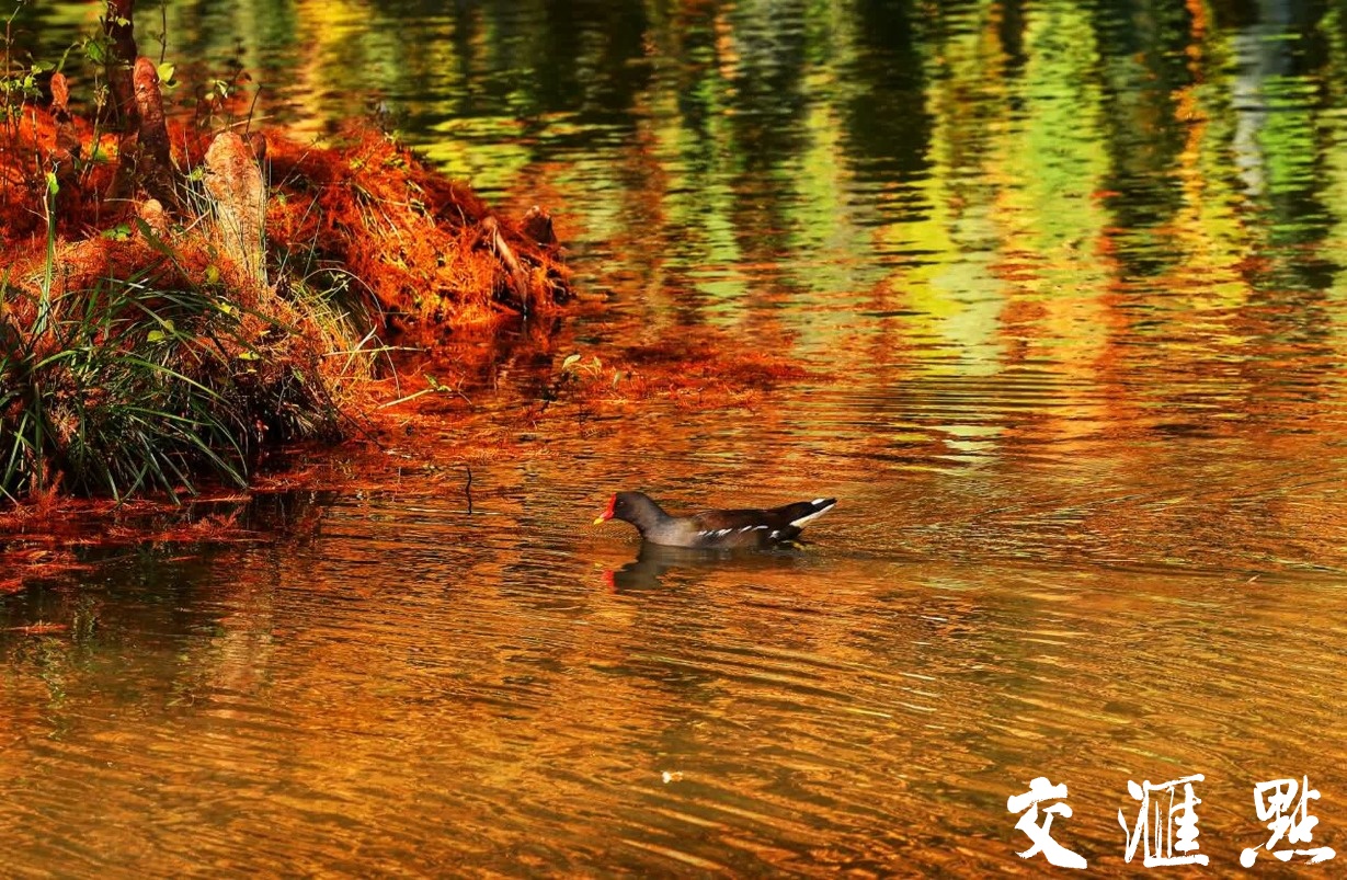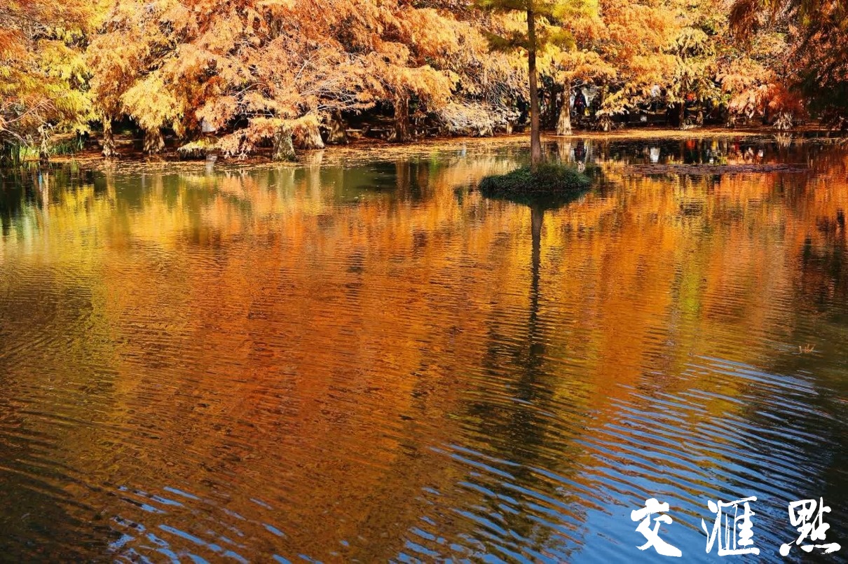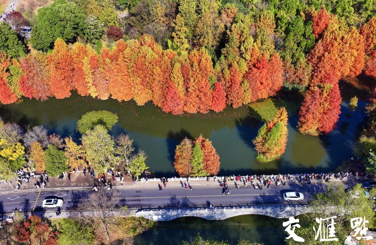 湖中落羽杉绚烂变色,红、黄、棕交织,与澄澈湖水相互映衬,如梦幻般迷人,吸引很多游人前来打卡、拍照。新华日报·交汇点记者 赵亚玲摄