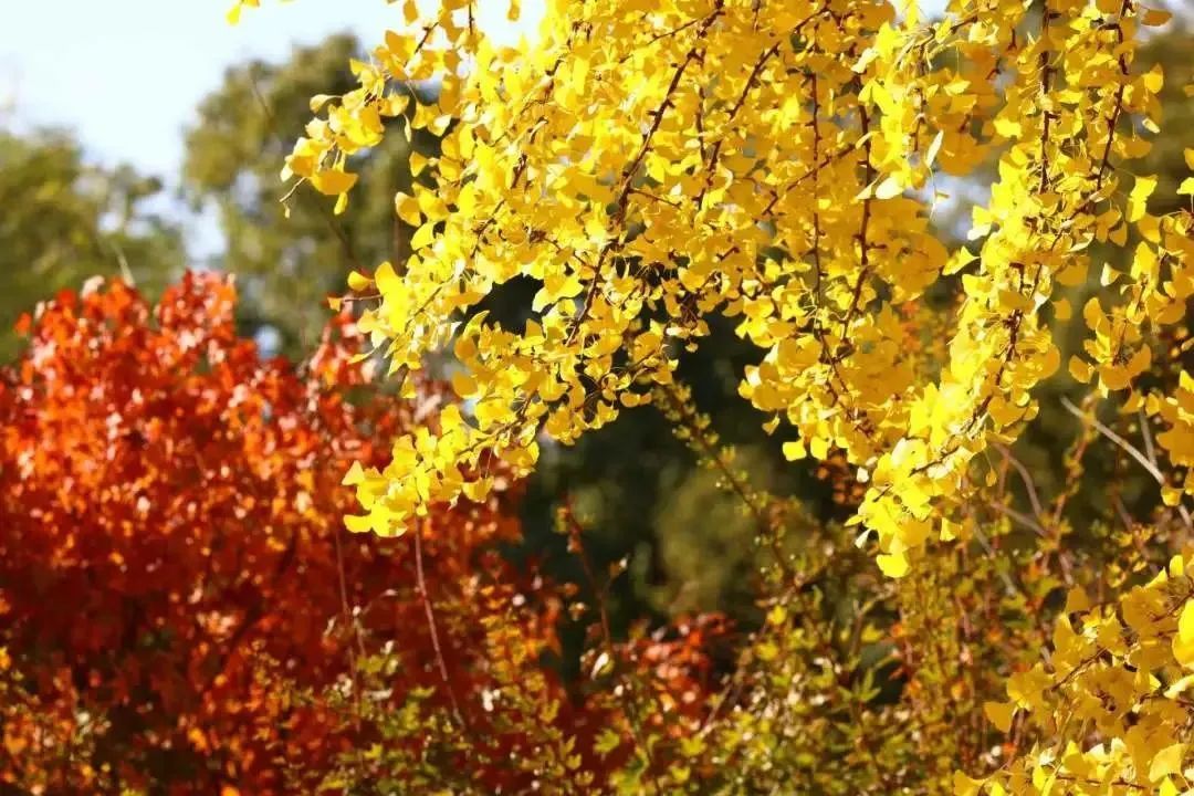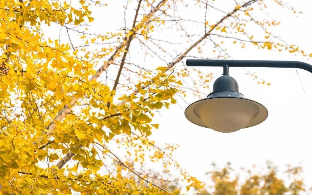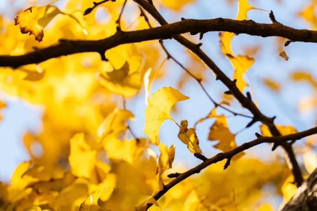 金黄的叶子在阳光下摇曳,风儿一吹,片片黄叶悠悠然飘向大地,如彩蝶翩翩起舞,片片飘落下的黄叶,给大地铺上了薄薄的一层金黄,温暖而明亮,勾勒出这个季节最美的画面。
