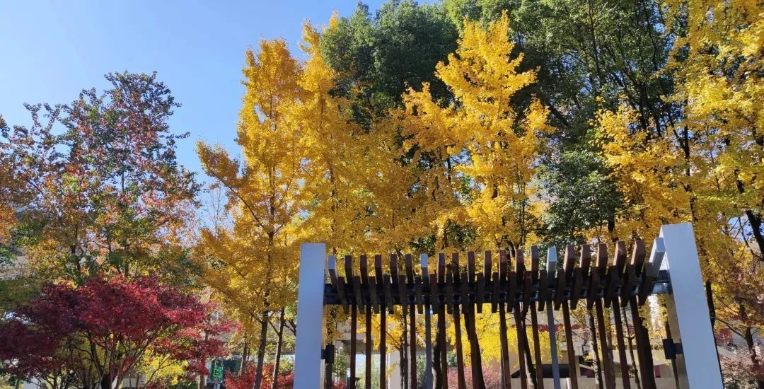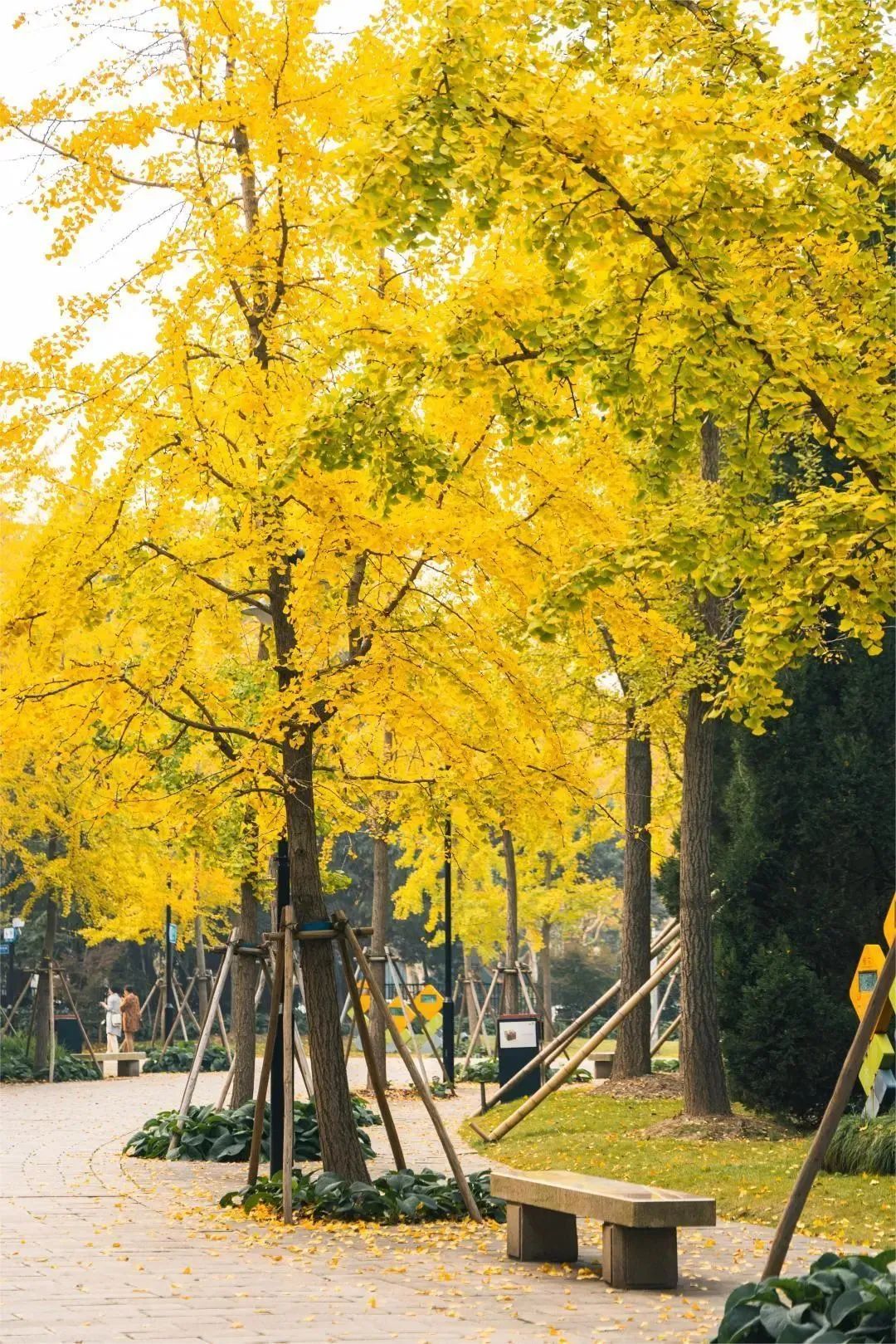 世纪公园一年四季都很美,春天公园一片绿色,很养眼;初冬来了,银杏变黄了,黄色绿色搭配在一起,特别好看。