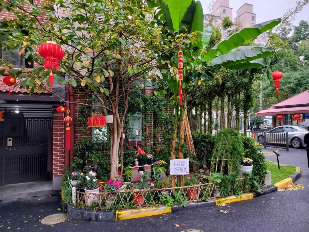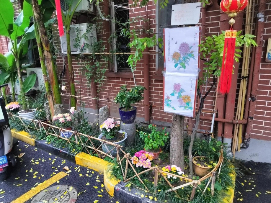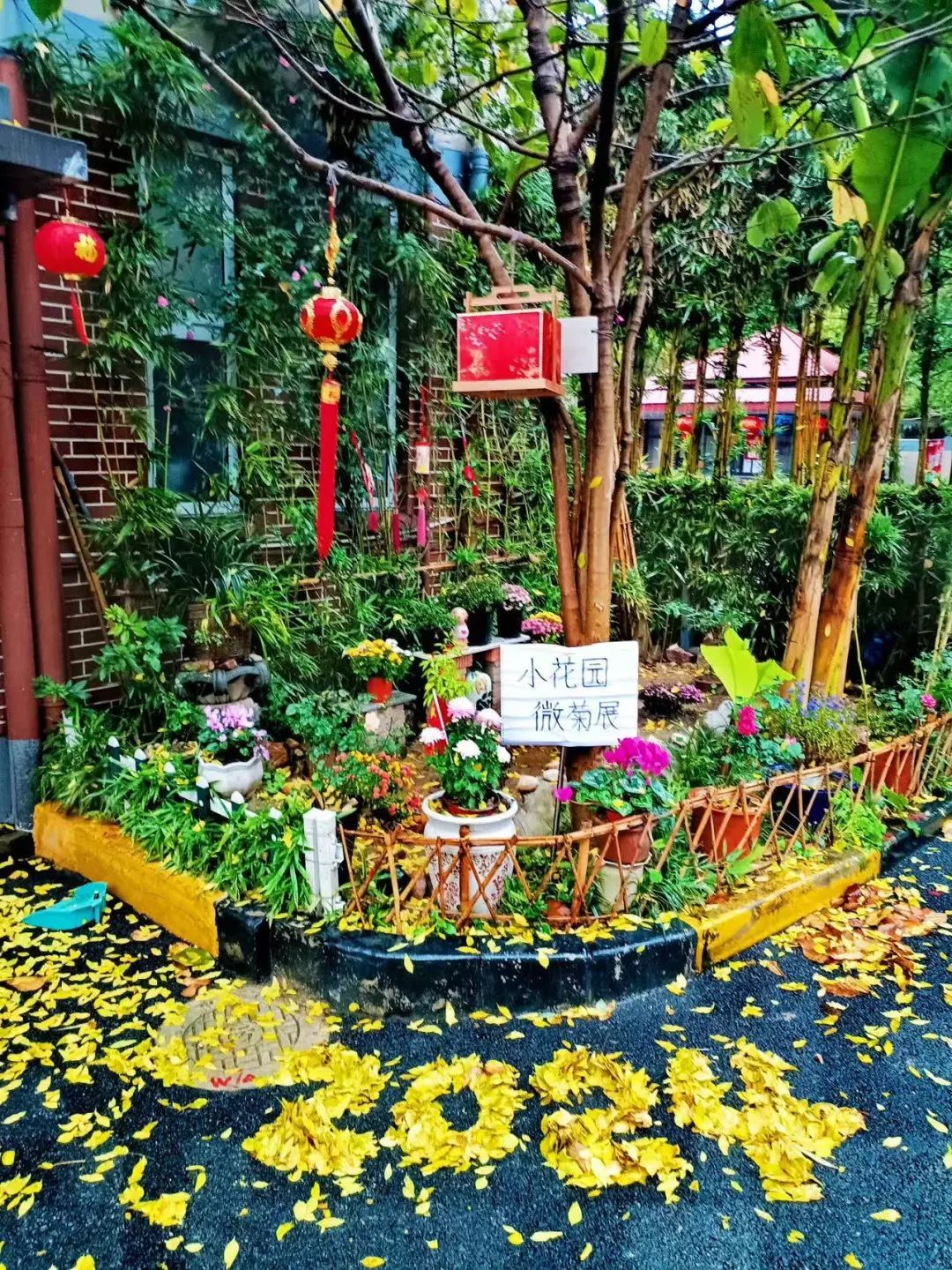 肖老伯说,今年10月,他参观了森林公园的菊花展后深受启发,决心将小花园重新布局,让秀苑小区的这个小角落也能品金秋菊韵。他连着两天奔波在花鸟市场和附近的花店,精心挑选各类秋菊盆花,为了不影响根系和开花,他把整个原盆埋入泥中。光有花还不够,肖老伯还从家里拿出了各式小挂件和灯笼,营造出热闹的赏菊氛围,还挂上了“小花园微菊展”牌子,让这个微型展览有模有样。