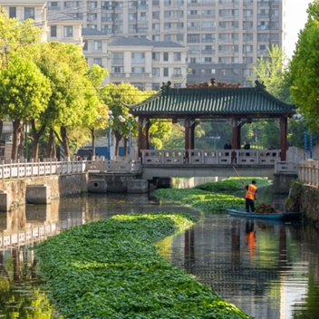 在改造一新的古运河东门段,多种特色元素构成的景点墙隐于旧瓦间,错落有致,尽显文艺浪漫风情,古亭里、连廊上,人们或休憩聊天,或驻足欣赏运河风光;昔日岸坡陡、乱垦种的京杭大运河支浜新库港,如今缓坡草坪搭配精致“花镜”,塑造出水清岸绿、绿柳扶风的景观;菱湖大桥下那片原本荒芜的桥洞空间被激活,“变身”为拥有篮球场、攀爬架、健身步道的运动乐园。