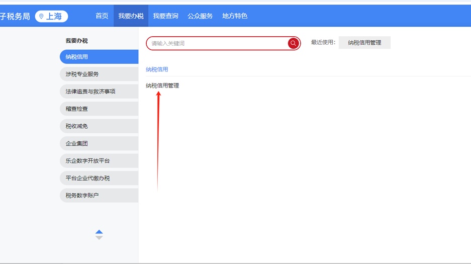 2.点击【我要办税】-【纳税信用】-【纳税信用管理】。