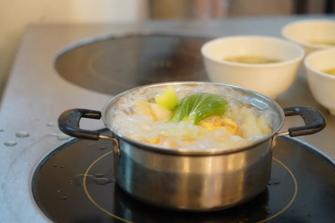 众芳片区我嘉餐厅负责人介绍,考虑到老年人的饮食需求,餐厅在制作菜品时少油少盐,确保既健康又美味。“我们这个三鲜汤基本没放油和盐,就用咸肉调了调鲜,所以老年人吃下来觉得可以,反馈不错。”