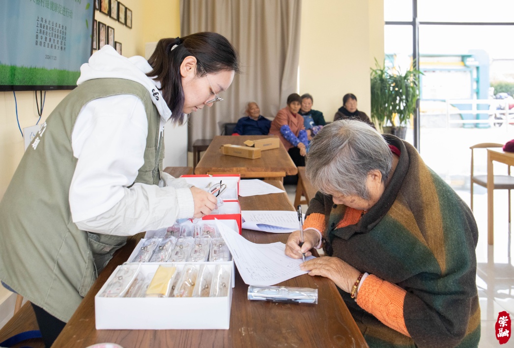 体验馆开馆当天,来自上海健康医学院附属崇明医院的眼科专家向村里的老人们普及眼科健康知识,并为他们检测视力,挑选合适的老花眼镜。另一边,中医专家为老人们问诊把脉、检测体质,并提供中医养生指导。