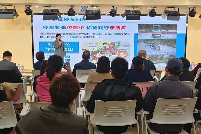 从“卫生死角”到“小区门庭”、协商议事巧解停车难题、改造三个车库背后的暖心举措、一个“高级”垃圾箱房的改造......活动现场,七位社区工作者讲述和回顾了鲜活生动的社区治理故事,其中涵盖了加装电梯、电动自行车安全充电、小区停车难、社区隙地治理、邻里纠纷调解等居民关心的桩桩“小事”。