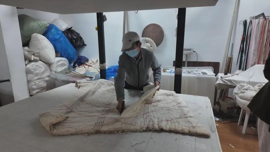 除了翻新棉花被外,童师傅的小店还提供换被套、充绒、修正填充物不均等各种被子相关的服务。甚至还可以将闲置的毛衫做成被子,只收取加工费。童师傅表示,他最大的心愿就是能够收几个徒弟,一起将这门手艺传承下去。