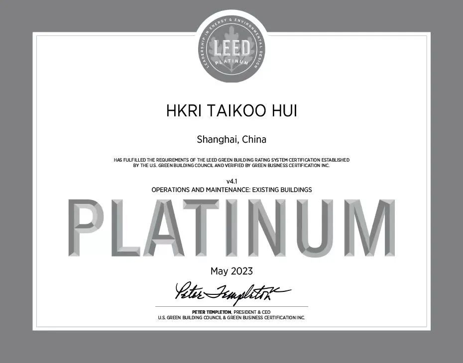图:兴业太古汇“LEED 运营与维护:既有建筑”V4.1铂金级认证