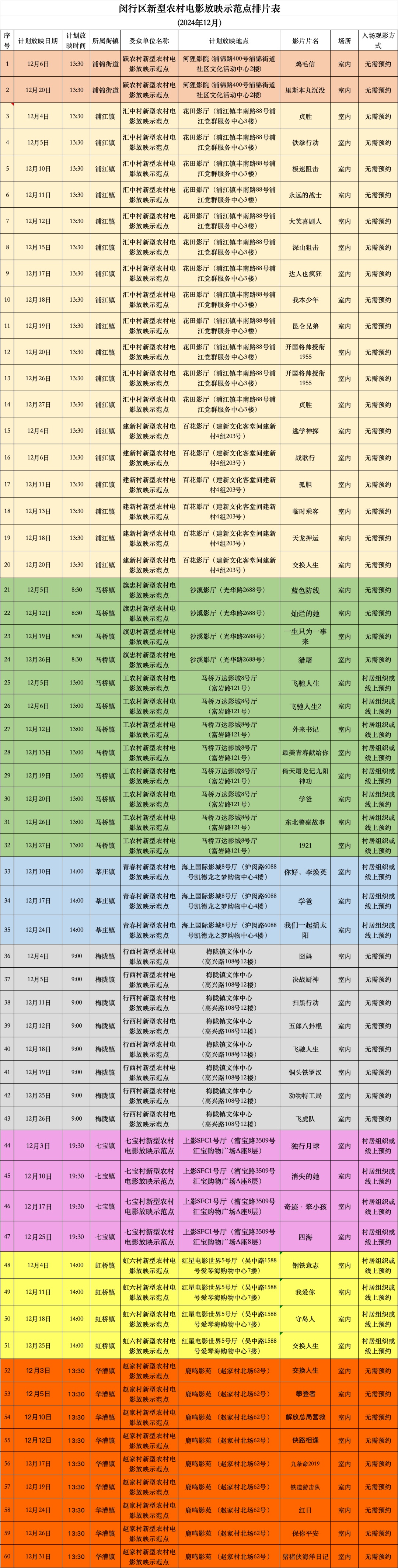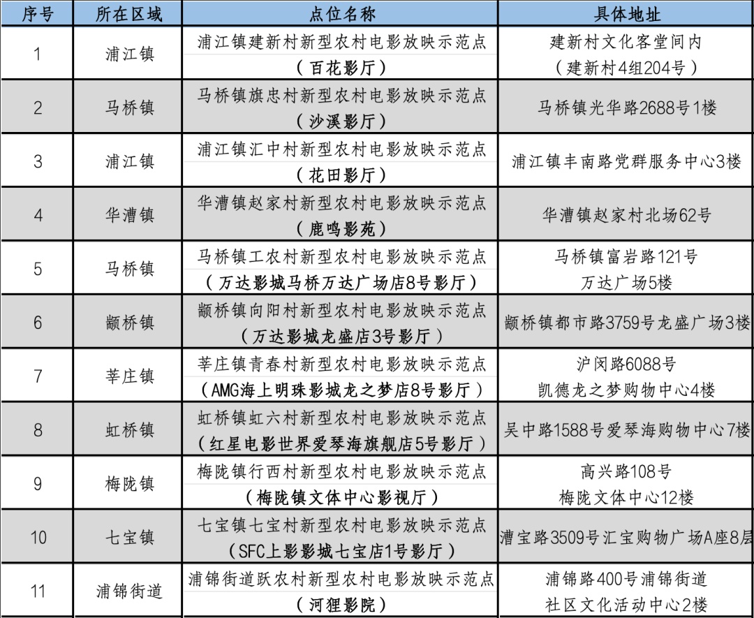 温馨提示:免费公益场排片以各新型农村电影放映示范点实际安排为准。更多观影信息,请关注属地街镇文体中心和相关影院信息公示。