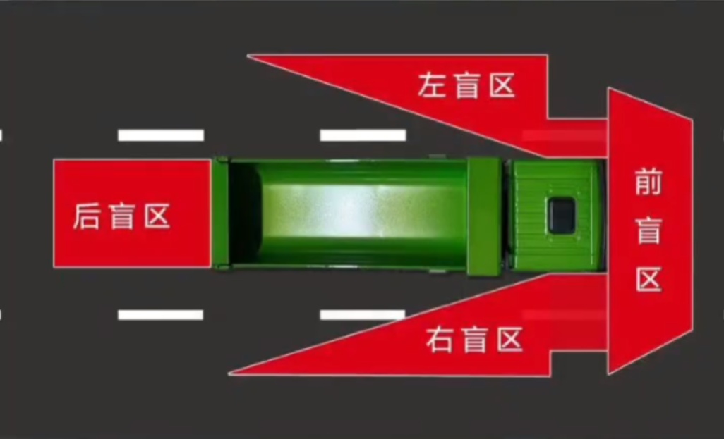 大货车由于体积大,在行驶时存在较大的视线盲区;行人和“小身材”车辆驾驶人如果处在盲区范围内,会有极大的安全隐患。
