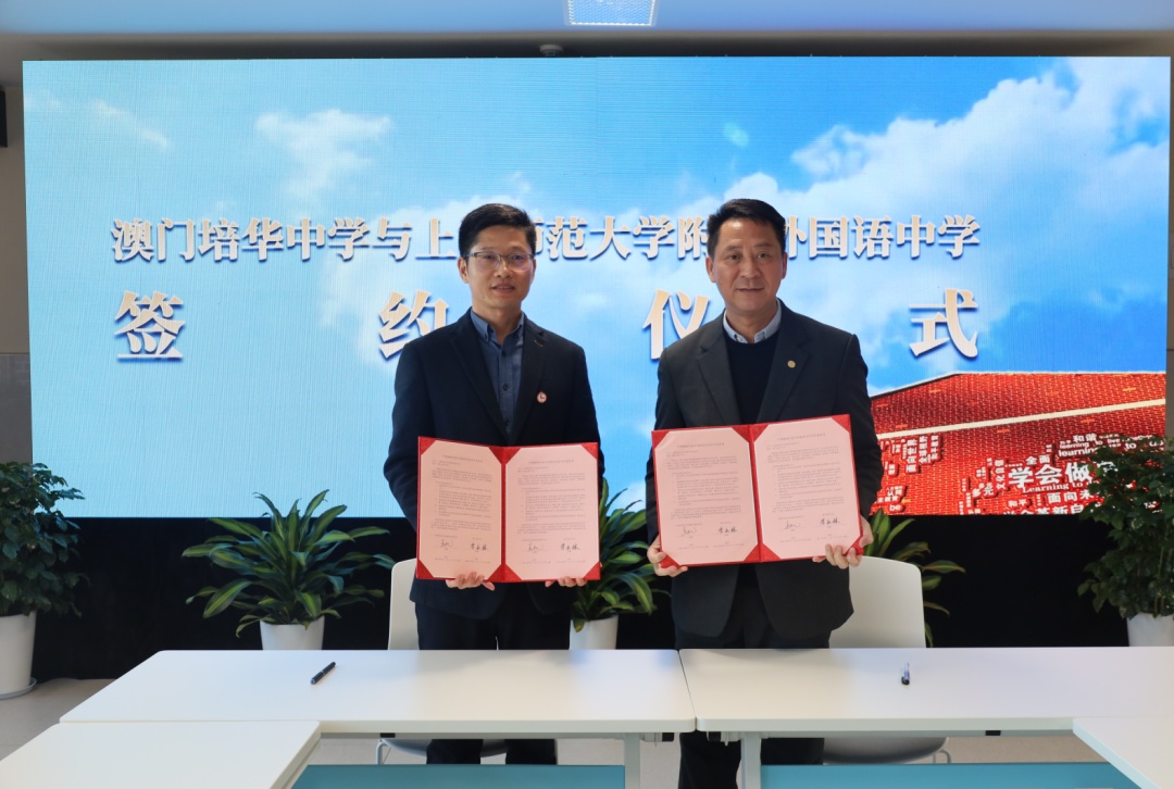 11月28日,上海师范大学附属外国语中学与来访的澳门培华中学签署姐妹学校教育交流合作意愿书,建立教育合作关系。