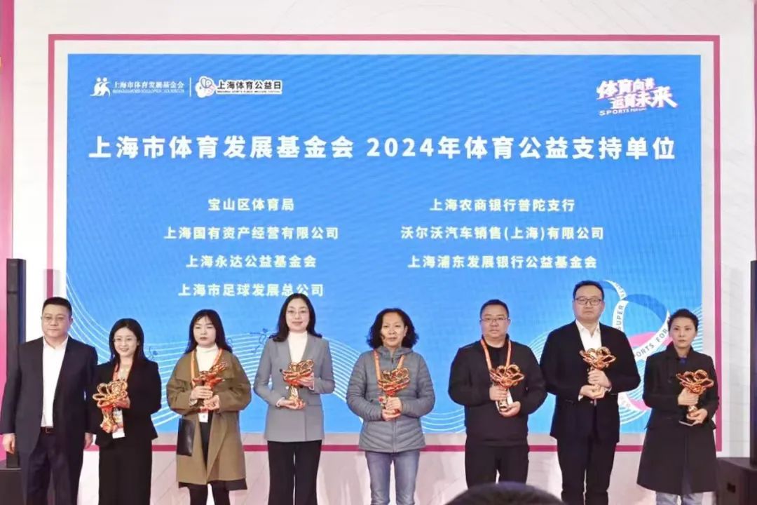 市体育局副局长许琦为上海市体育发展基金会2024年体育公益支持单位颁发奖杯