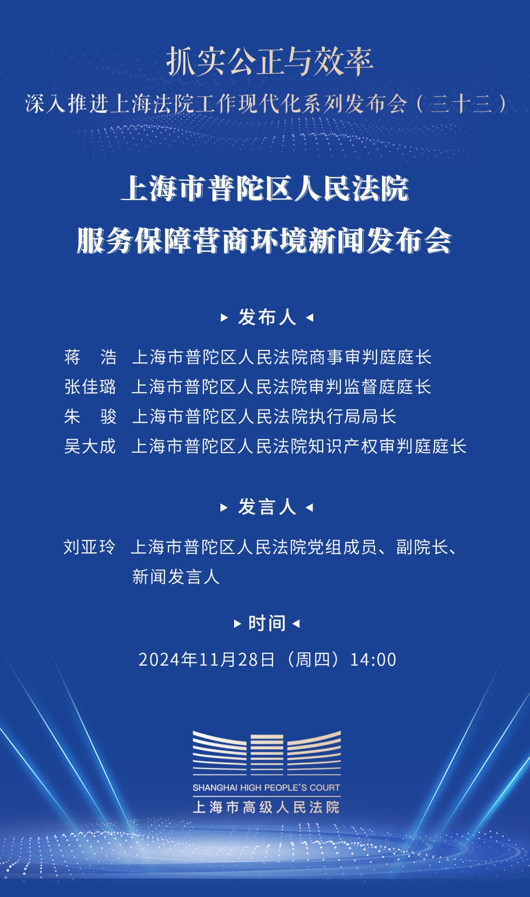 本场发布会是上海法院“抓实公正与效率——深入推进上海法院工作现代化”系列发布会的第33场。