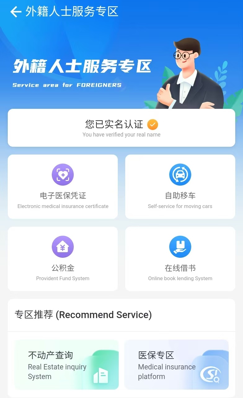 新改造的8项场景中,有独属于无锡的贴心:凭借“五星卡”可办理水、电、燃气账户开户,“太湖交通卡”,健康证,直接签订旅游合同参加团队旅游,申领“见义勇为”奖补,“灵锡”App还新增了“外籍人士服务专区”。