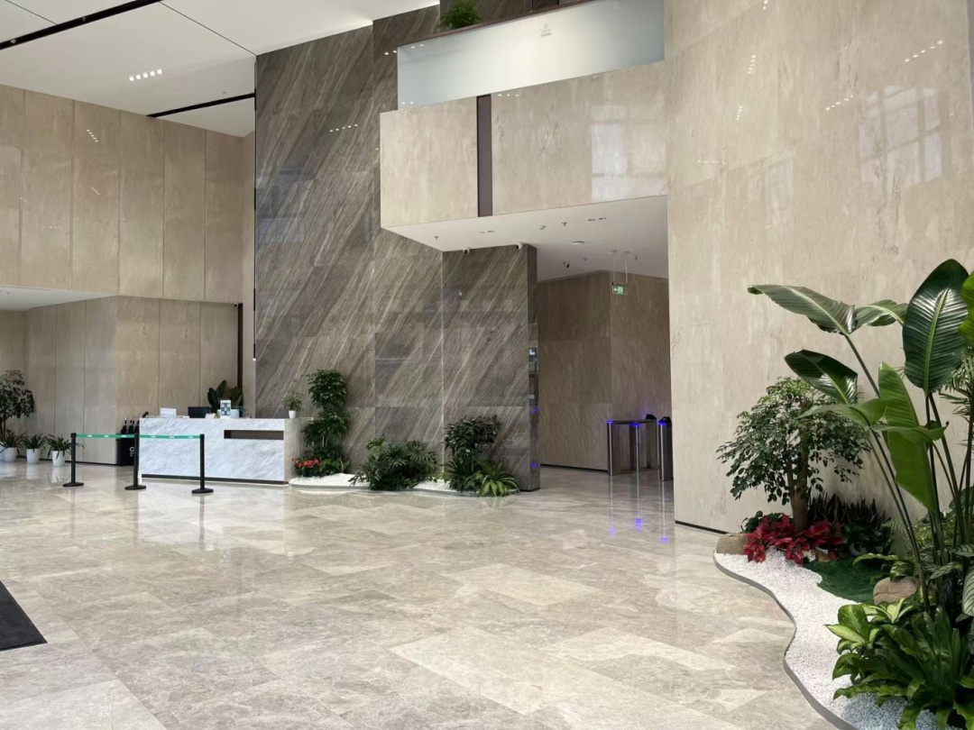 “整个园区依河而建,拥有长达360米的亲水公园,整体绿化率超过50%。”园区负责人介绍道。办公楼内更是别有洞天,绿植错落有致地分布在各个角落,如同置身于一座天然氧吧。据了解,上海邦芯科技园采用国际建筑大师的空间布局和景观设计,巧妙融合了天光、树影与水韵,将自然元素无缝接入创新创业的工作氛围中,真正实现了“会呼吸的办公情境”。