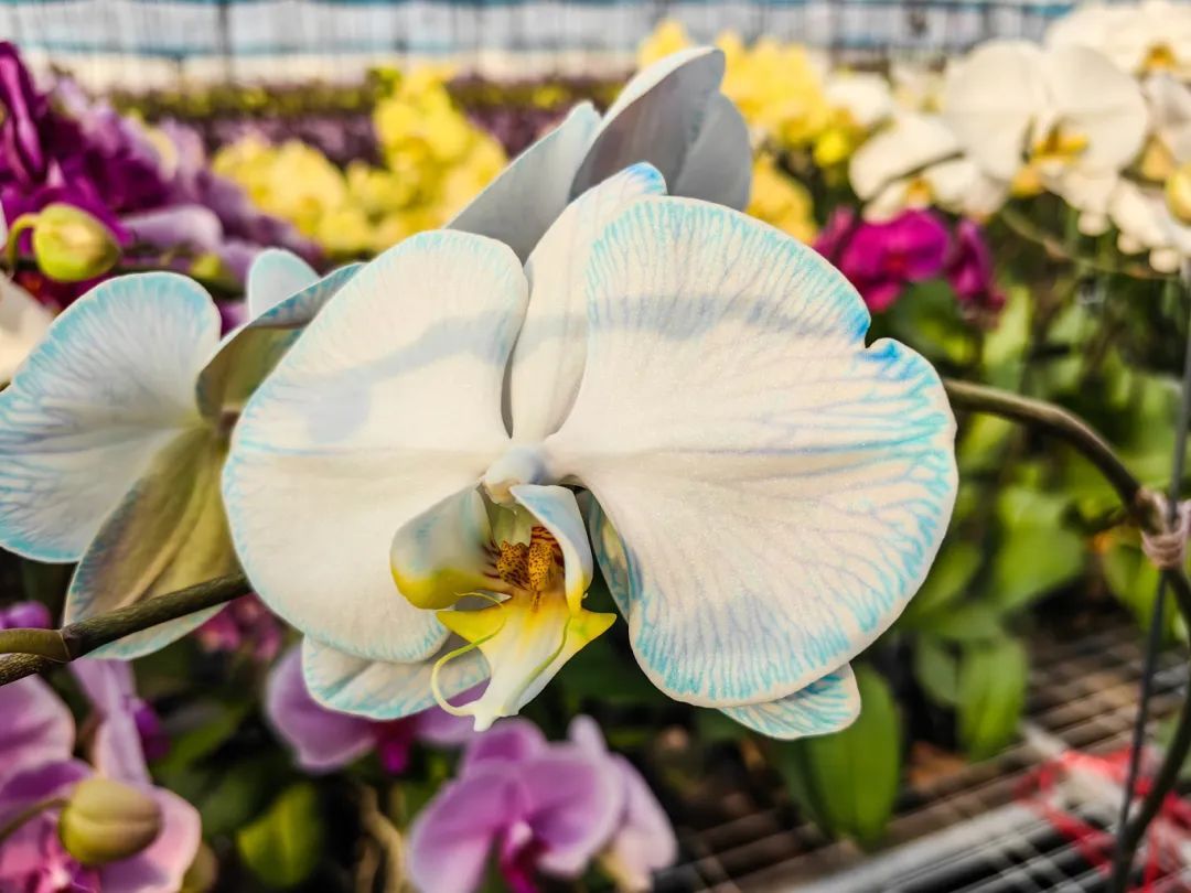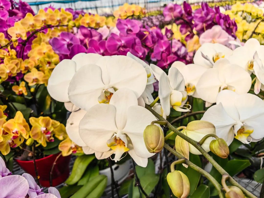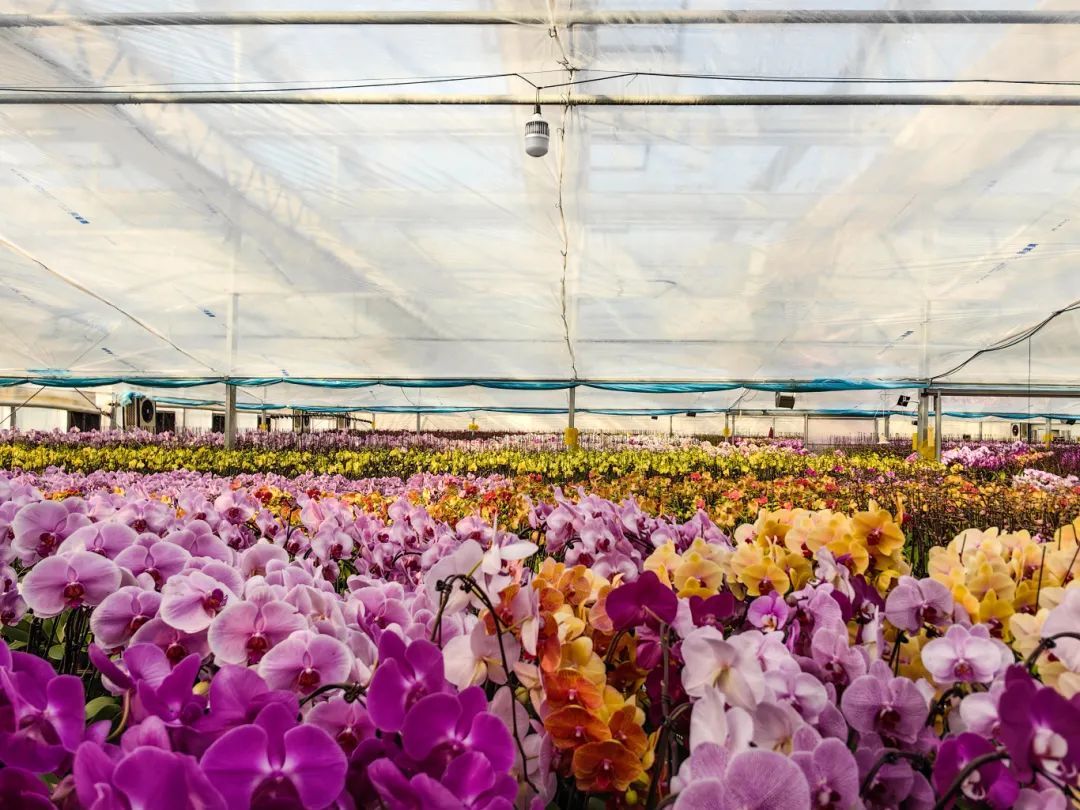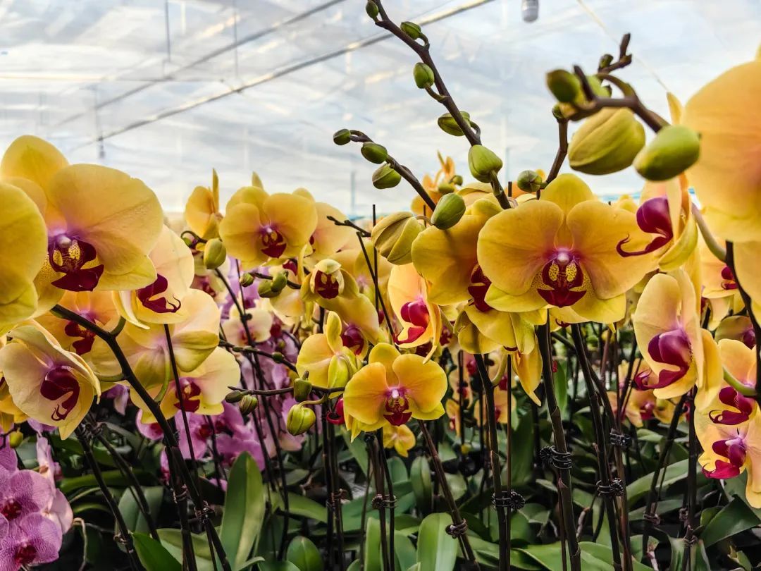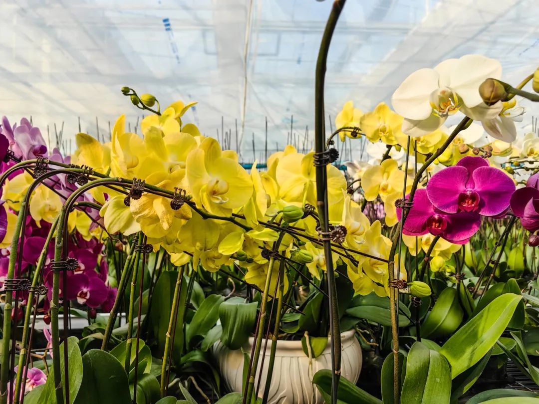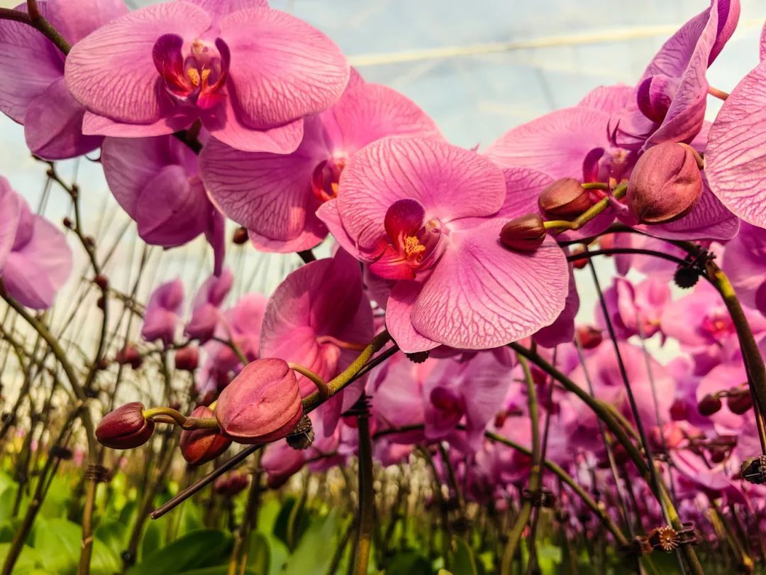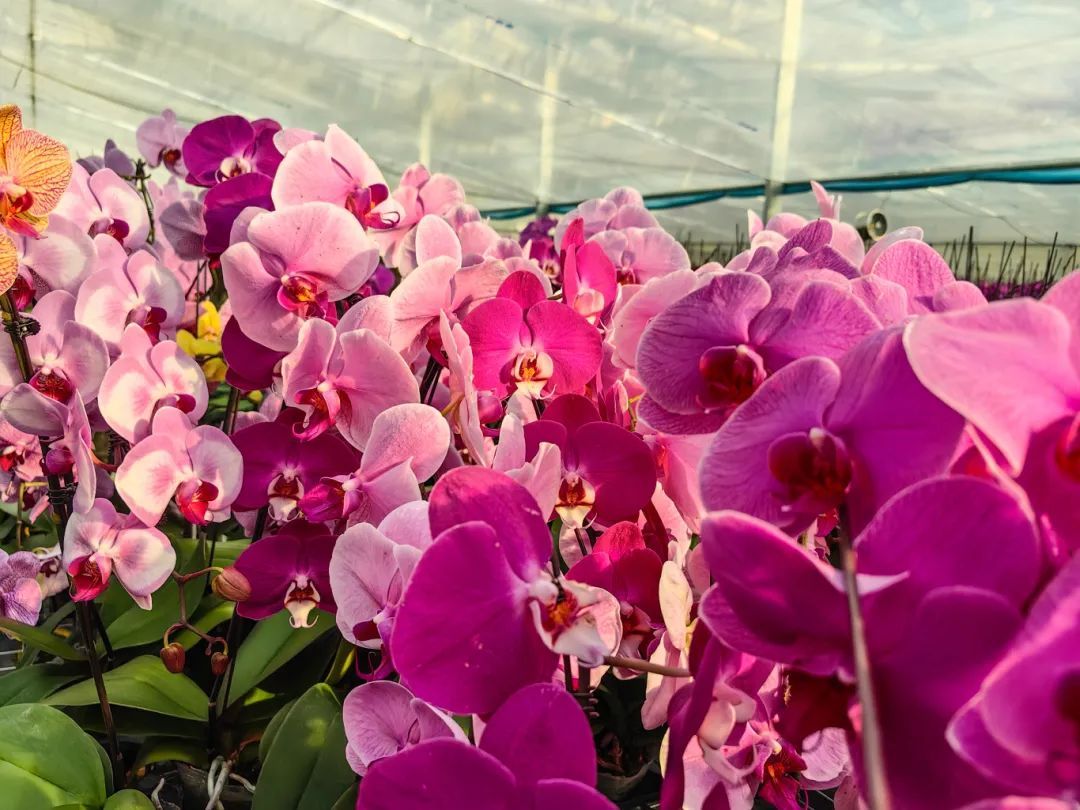基地内的蝴蝶兰花朵硕大、色彩鲜艳,犹如一只只展翅欲飞的蝴蝶,轻盈而灵动。