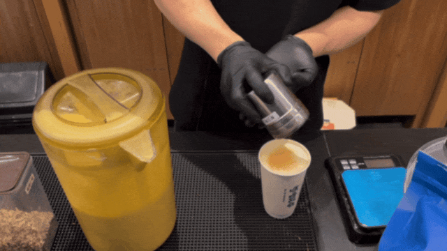 “我每次来点的都不一样,这家店比较有创新性,各式各样的产品很多,我要强烈推荐这家的秋梨橘红膏!金桔、梨子、甘草、薄荷……很适合现在这个季节,喝下去嗓子很舒服!”周边商务楼白领王女士和张女士说。