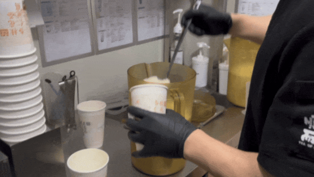 “我经常过来,每次来都点热的,最喜欢喝杏仁豆腐桂花茶和驴打滚牛乳茶,这两款都比较清淡,推荐正常糖。”在周边工作的白领宋女士说。